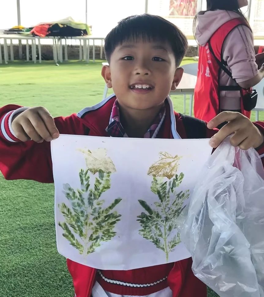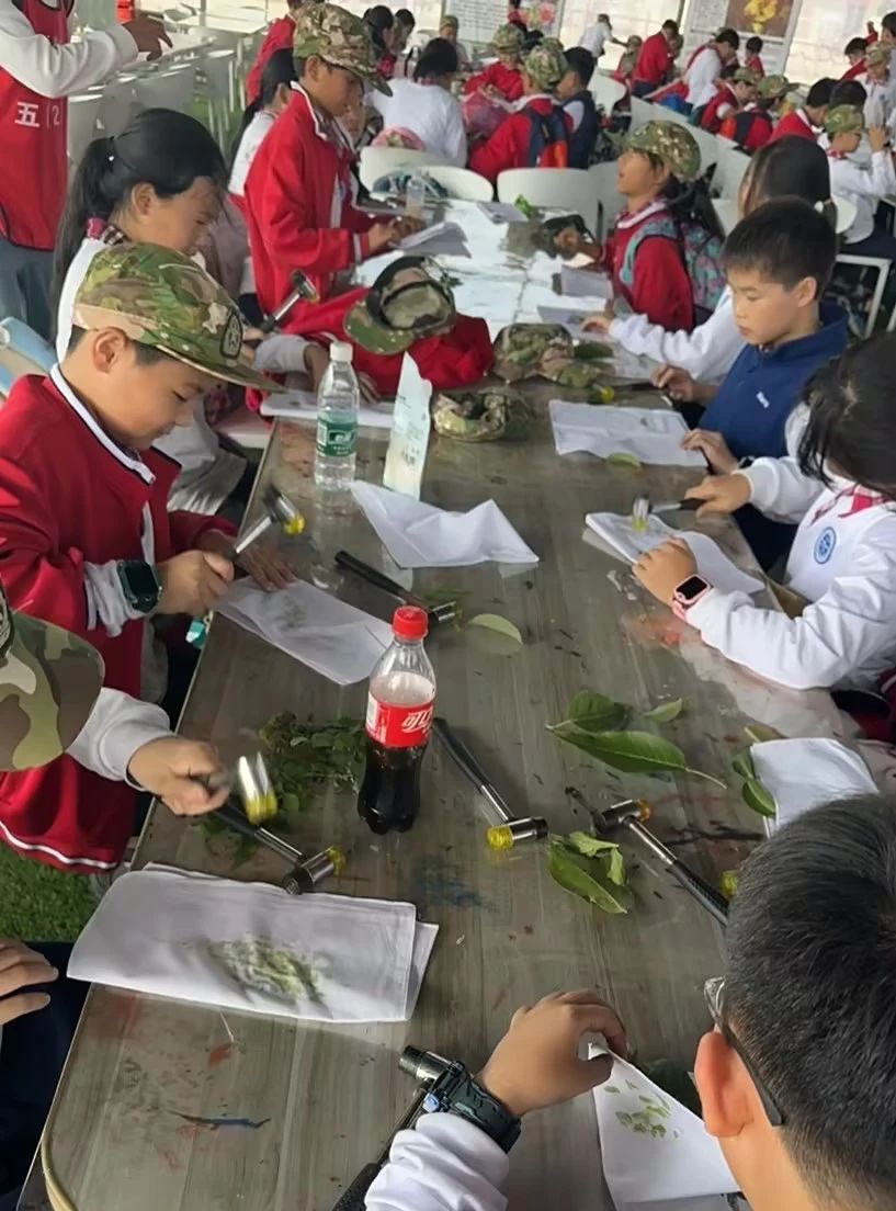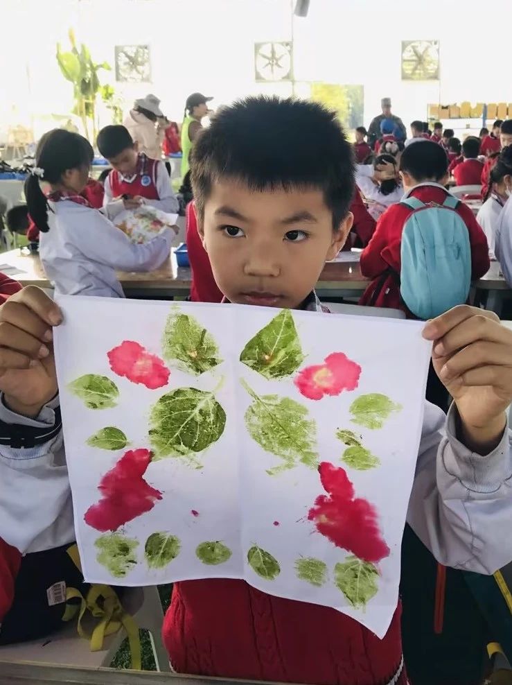 午餐后,孩子们还体验了植物拓印、扎染、割稻谷、毛毛虫大赛团建项目。