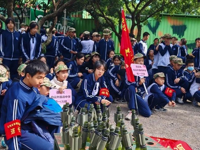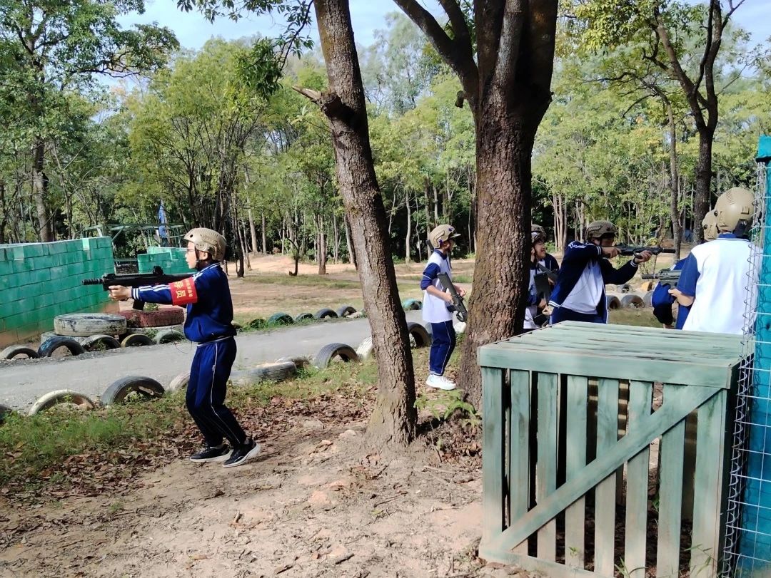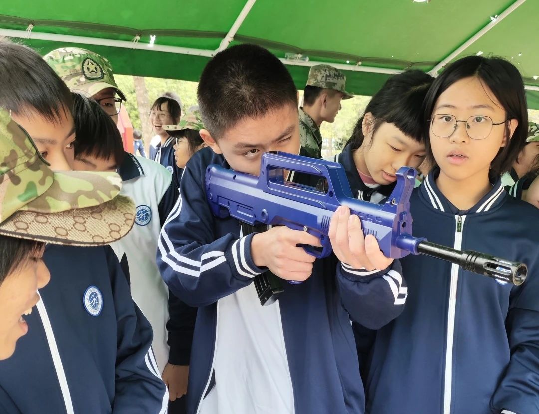 初一初二的研学分为轻武器射击、CS竞技对抗体验、劳动教育、非遗工艺、趣味拓展五个部分。同学们以沉浸式的体验、以饱满的热情参与到每一个项目,既增长了国防知识,又锻炼了劳动能力,还培养了爱国情感。