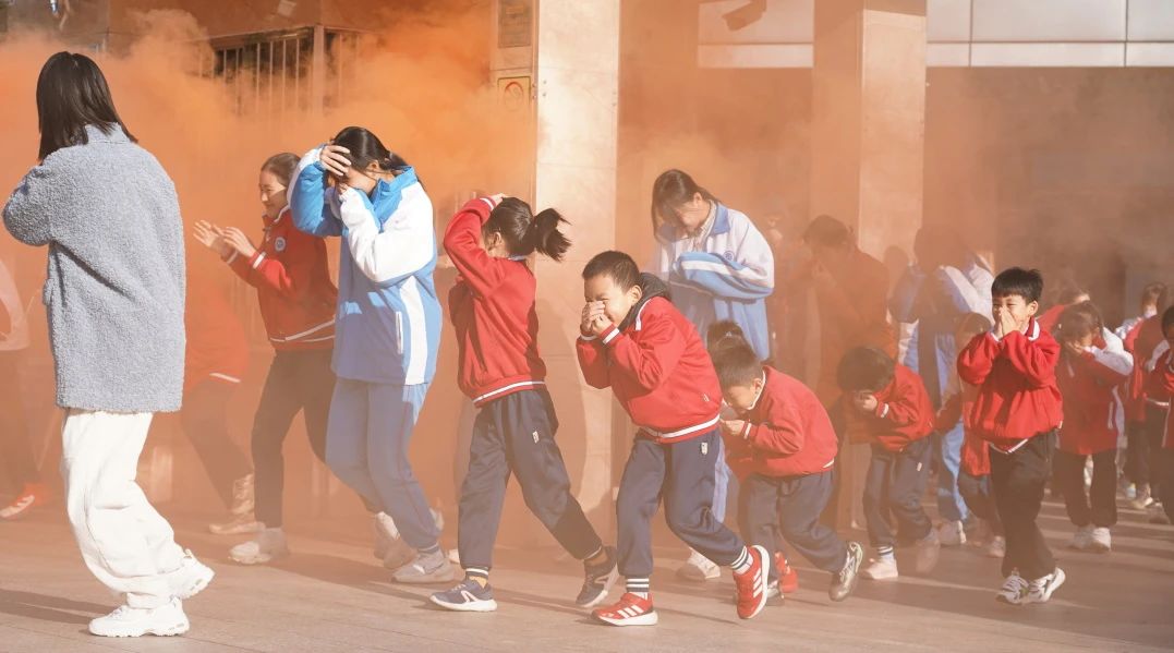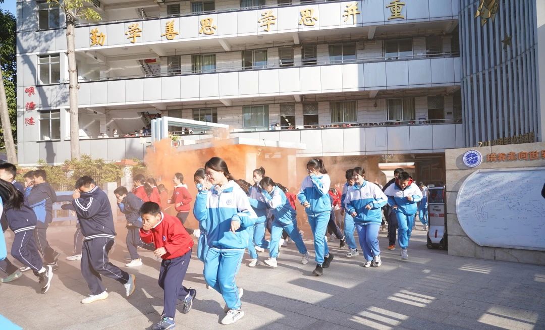 上午9点,随着 “现在学校教学楼发生火灾,全校师生立即疏散” 的警报声响起,演练正式拉开帷幕。各班教师迅速响应,有条不紊地组织学生按照既定路线进行撤离。学生们用手捂住口鼻,弯腰低姿,沿着疏散路线快速前行,整个过程紧张有序、忙而不乱。在全体师生的共同努力下,大家迅速且安全地到达大操场指定地点集合,各班班主任随即清点人数,确保无一人遗漏。