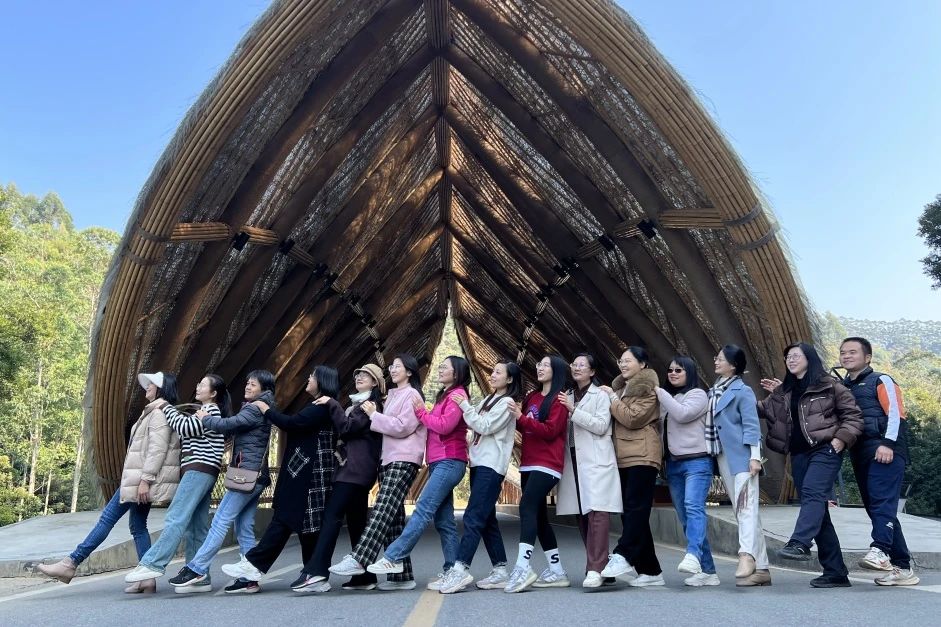 12月28日,尽管寒风瑟瑟,但阳光依然温暖。这一天,白云外国语中小学的100多名教职工齐聚在从化天人山水艺术园,共同开启了一场充满童话色彩的冬日团建活动。