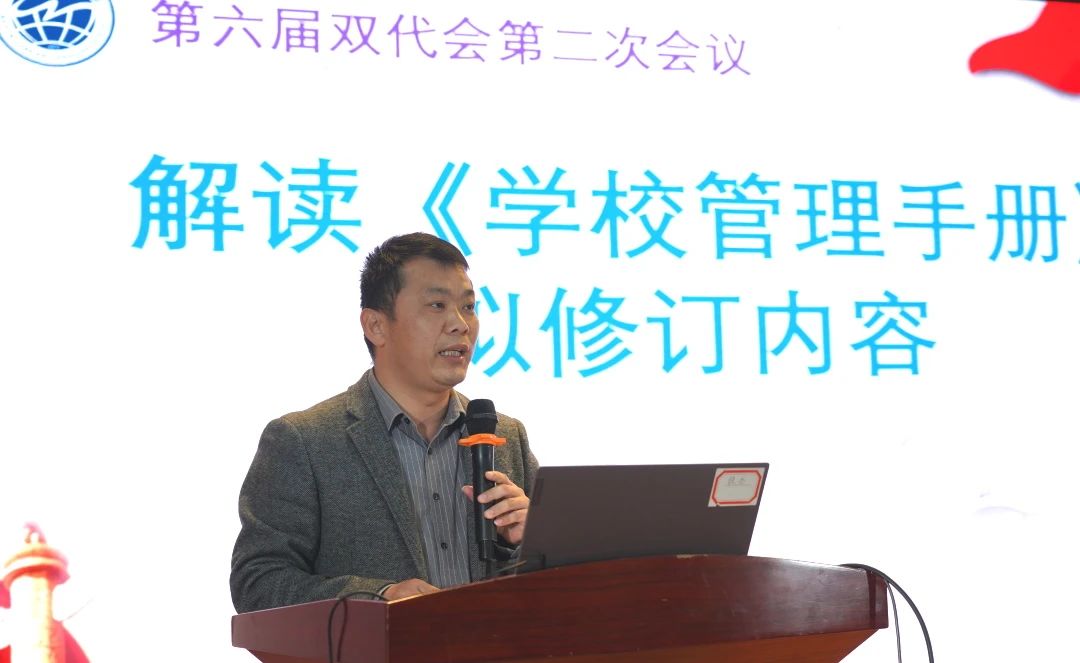 党支部副书记朱传兵在开幕词中寄语全体代表,希望大家秉持“以学生发展为目标、以教师发展为前提、以学校发展为保障”的核心理念,积极建言献策,共同为学校的高质量发展贡献力量。