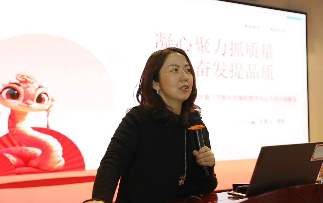 凝心聚力抓质量,踔厉奋发提品质。小学课程教学中心唐龄主任从常规教学与高效课堂建设,教研内容丰富与团队实力提升,开展活动凸显教学特色等方面对新学期教学工作计划进行了详细的解读。希望老师们能保持对职业、对校园、对学科的美好想象与期待,守住自己的课堂,同时关爱自己,拥有健康和好心情,以饱满的热情开启新的学期。