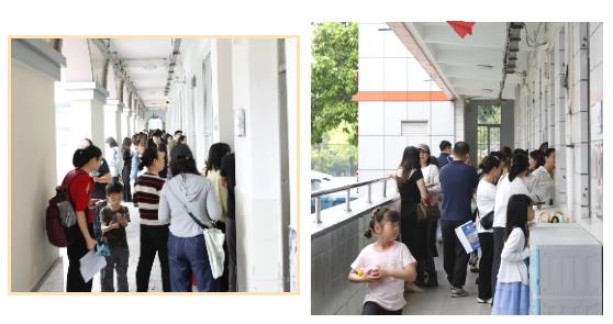 活动现场,身着整齐校服的小礼仪队员们面带微笑,以标准的指引手势热情迎接每位家长;校办老师们细致地为家长讲解开放日的各项安排,并递上详细的开放日课程表。面对家长们的各种询问,老师们始终保持着专业的态度,耐心细致地解答每一个问题。