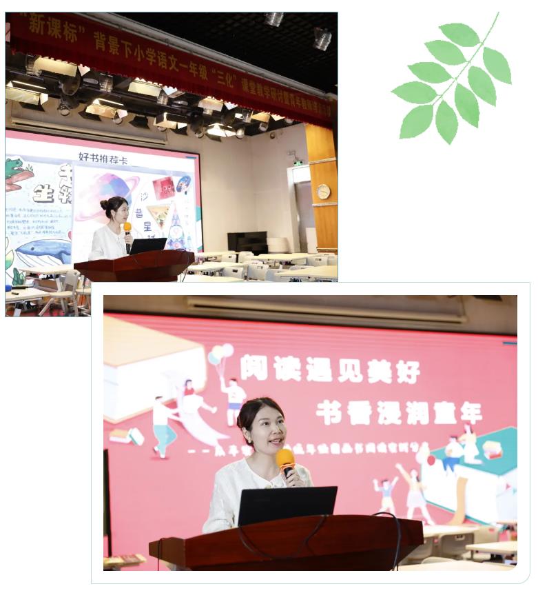 活动开篇,广州市庆丰实验学校陈婷老师带来《阅读遇见美好 书香浸润童年》专题发言。陈老师分享了低年段图画书阅读指导的实践经验。学校基于新课标要求,构建了"课内指导+课中联结+课后延伸"的三级课程体系,通过营造书香氛围打造沉浸式阅读场域。在教学方法上,创新推行"五步阅读法",引导学生深度互动,有效提升阅读兴趣与能力。为深化阅读成效,学校定期举办形式多样的成果展示活动,为学生搭建展示自我、交流互动的平台,让每段阅读旅程都留下成长的印记。这一系统化的阅读指导模式,既夯实了学生的阅读基础,也培养了其终身受益的阅读习惯。