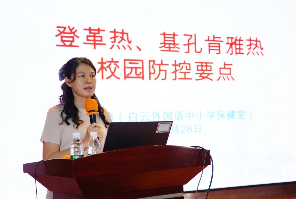 学校保健室李燕玲医生围绕登革热与基孔肯雅热防控工作开展了知识科普讲座,同步汇报了暑假期间学校的防控工作开展情况。讲座中,李医生细致讲解了“两热”的危害、传播途径、防控工作要点及校园蚊媒控制措施。