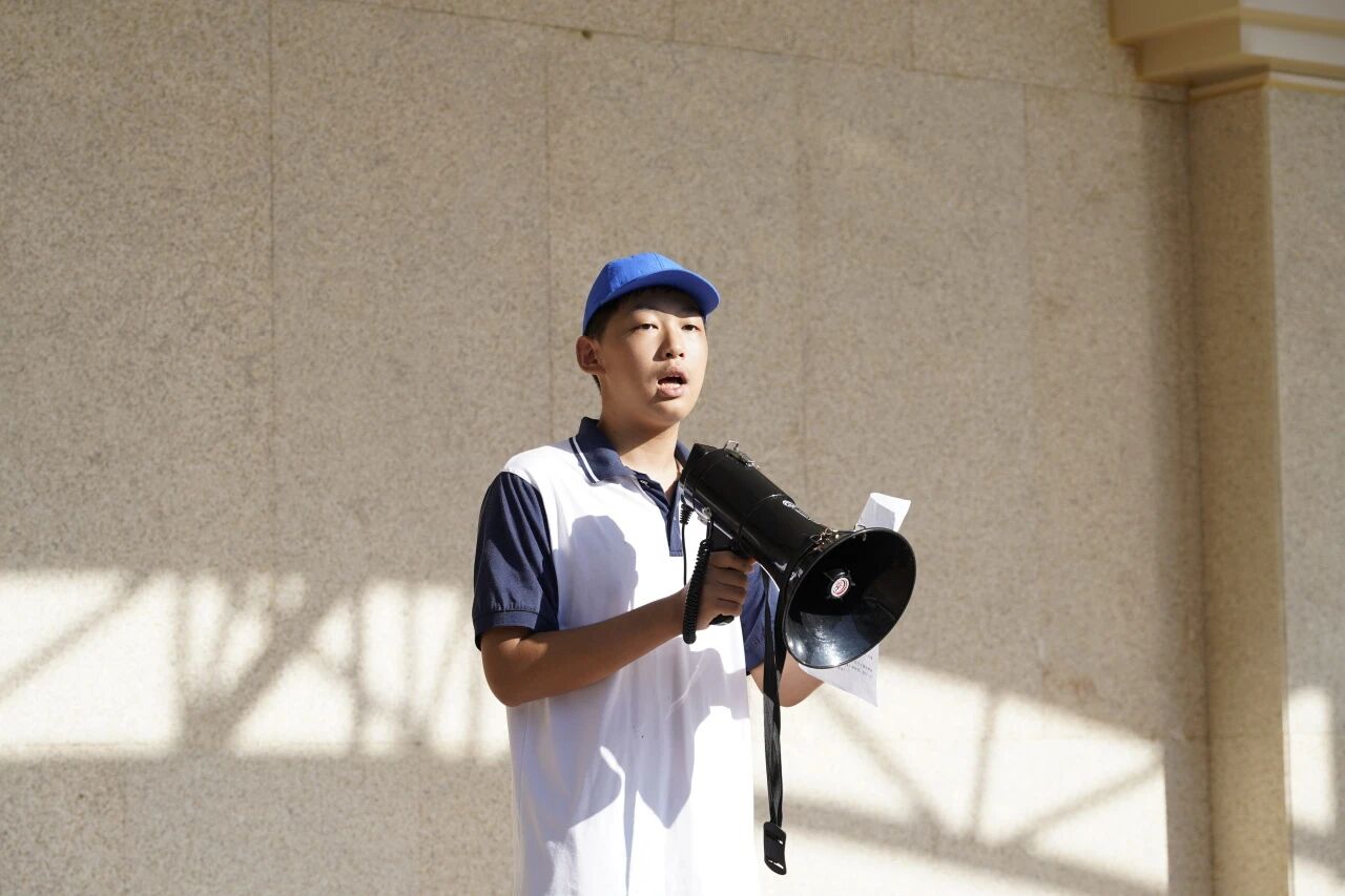 初二(1)班廖予豪作为学生代表发言,他号召同学珍惜训练机会:“不仅是为强健体魄,更是为锻造迎难而上的勇气!”其发言彰显了白云外国语中学学子追求卓越的精神风貌。