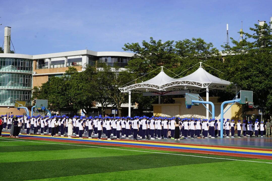 升旗仪式庄严举行。全体师生肃立注目,少先队员行队礼,伴着国歌声,五星红旗冉冉升起。这一刻,爱国主义情怀与奋斗信念深植于每位学子心中。