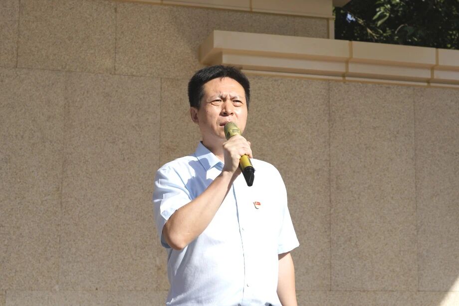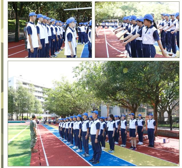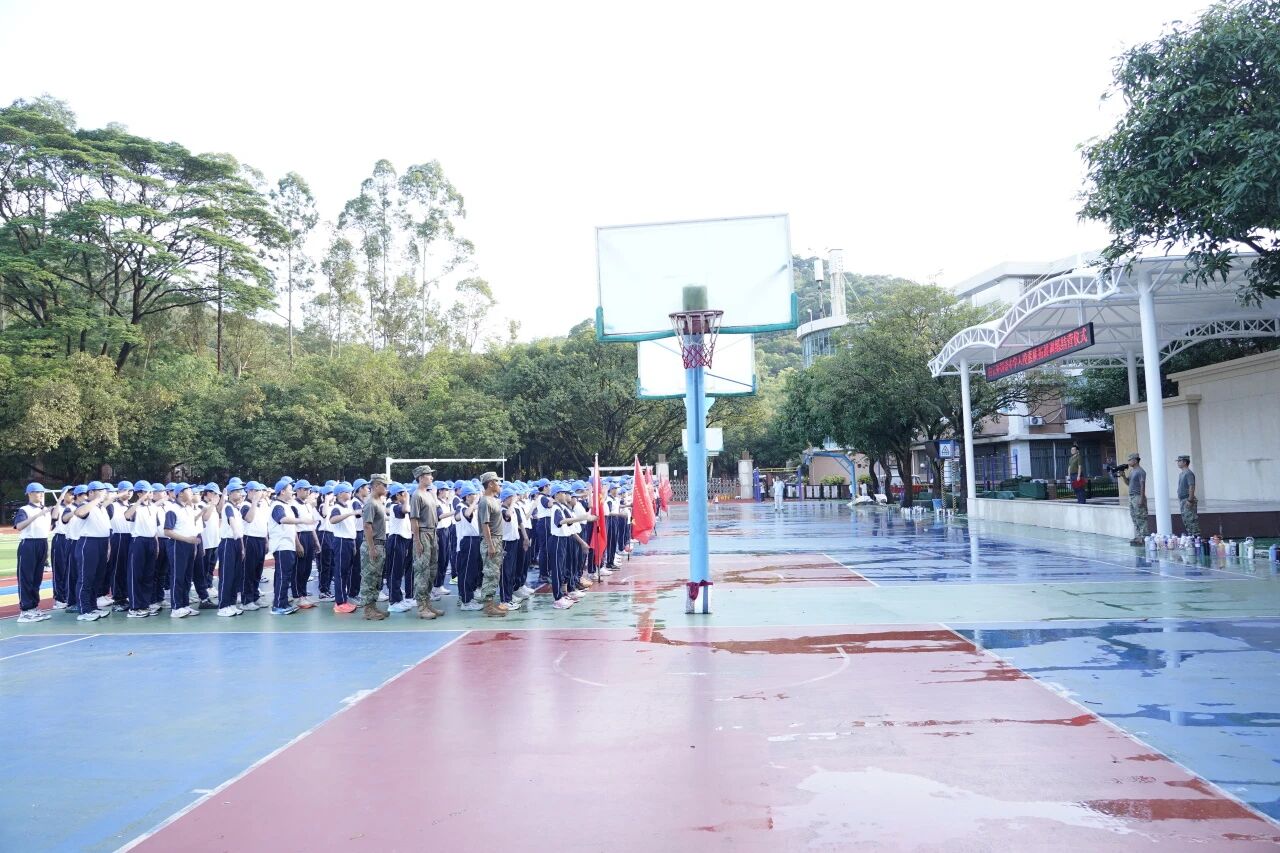 8时整,仪式在激昂的氛围中启动。党支部书记、校长方建军,党支部副书记朱传兵,副校长黄秋敏,以及中学学生发展中心老师、初一及初二年级全体师生、全体教官共同参与了本次活动。