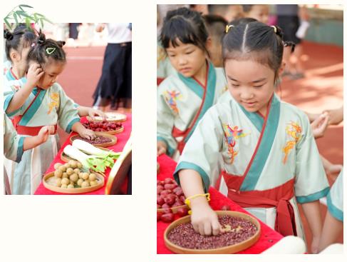 仪式伊始,一年级新生在老师的带领下,依次完成 “摸五谷” 与 “过状元桥” 的传统环节。孩子们伸手触摸象征美好寓意的五谷——摸大葱盼“聪明伶俐”,摸芹菜寄“勤奋好学”,摸生菜愿“步步高升”,摸莲子祝“和和美美”,摸黄豆望“飞黄腾达”,每一份触摸都承载着学校与家长对孩子的殷切期许。