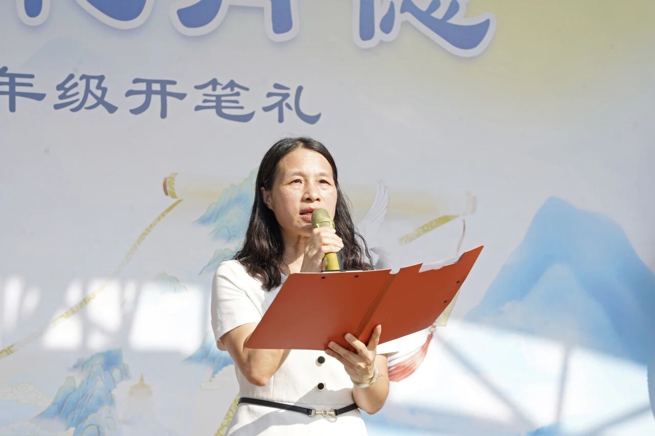 随后,黄哲昙副校长上台致辞,她向新生们致以热烈欢迎,鼓励孩子们以开笔礼为起点,在校园中勤学善思、明礼笃行,传承中华优秀传统文化,成长为有理想、有担当的新时代学子。