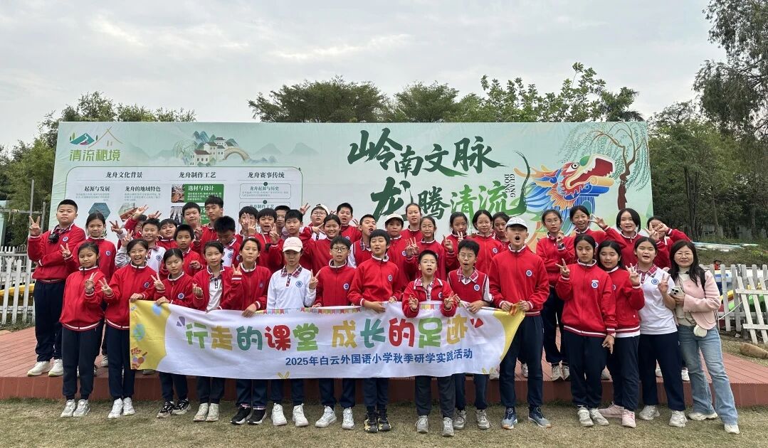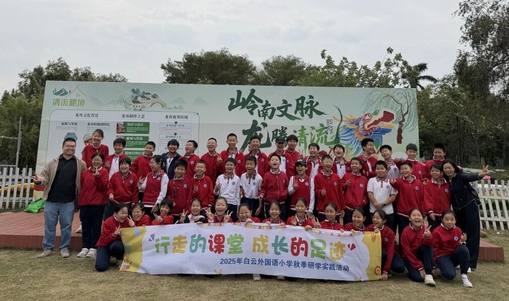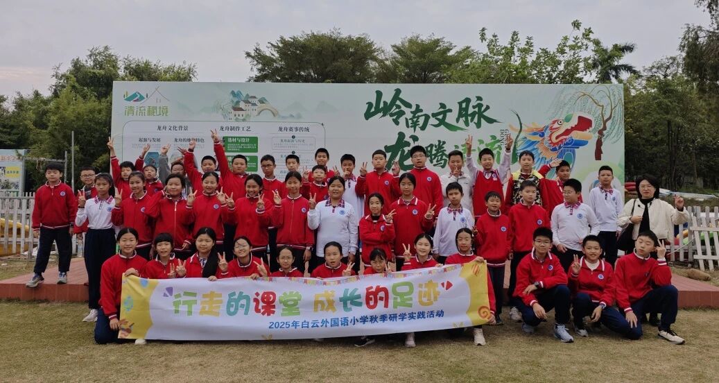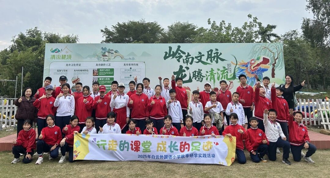 与自然亲密接触,与同伴快乐协作。11月18日,白云外国语小学六年级全体同学一路向南,奔向研学实践目的地——番禺清流秘境研学基地。学校严格筛选了活动项目以及细致筹备安排活动环节,将传统龙舟文化的深厚底蕴、趣味团队协作游戏的欢声笑语、新兴陆地冰壶运动的智慧碰撞、野外生存技能的实用探索以及丛林探险挑战的勇气考验巧妙融合,为学生们打造了一场集文化体验、团队协作、体育竞技与自然探索于一体的综合研学盛宴。