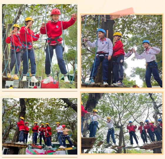 丛林穿越挑战则是对学生们勇气和毅力的终极考验。面对绳网、独木桥、吊环等重重障碍,学生们的心中或许有过一丝恐惧和犹豫,但他们没有退缩。他们勇敢地迈出了步伐,一步一个脚印地向前迈进。在穿越的过程中,他们相互鼓励,相互支持,共同克服了内心的恐惧,凭借坚韧不拔的意志完成了穿越任务。这一经历不仅锻炼了他们的体能,更培养了他们面对困难时的勇气和决心,让他们明白,只要有勇气和毅力,就没有克服不了的困难。