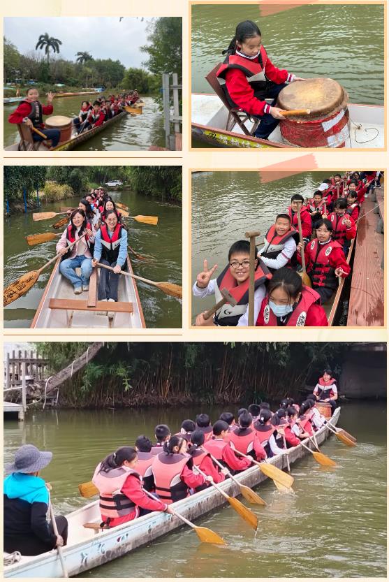 听,擂鼓声振奋人心。水上龙舟体验项目活动拉开了研学的序幕——同舟共济。在专业教练的带领下,各班分班开展一场别开生面的龙舟文化课堂,通过图片、视频以及实物,让学生了解龙舟文化的历史渊源以及文化寓意等,感受非遗文化的魅力,增强文化自信。在教练的指导下进行基础的划桨训练,前往安全水域,学生们分组登上龙舟,进行画龙点睛仪式,下水试划。开展趣味龙舟竞渡比赛,培养学生团队协作精神,同舟共济。