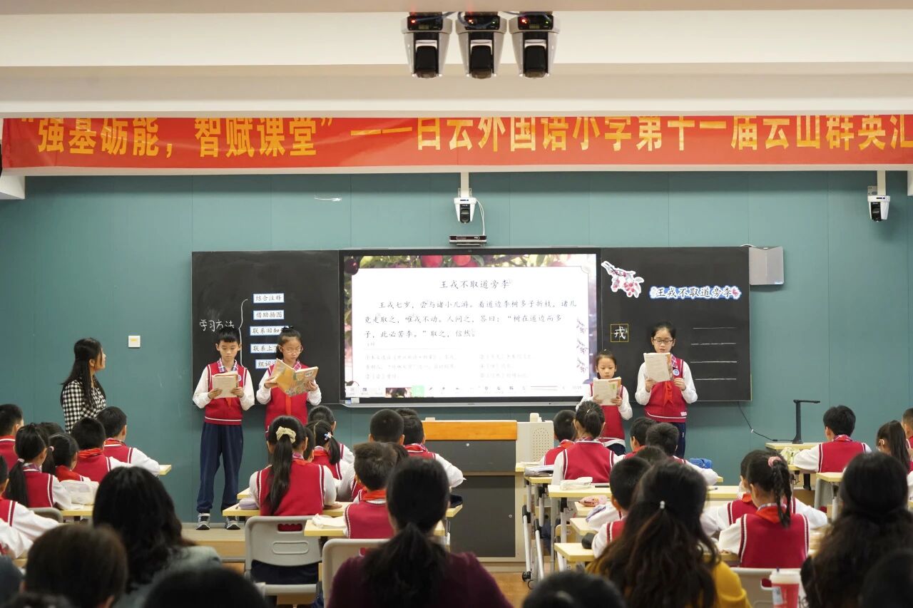 高语组张正君老师在图书馆为四(3)班带来《王戎不取道旁李》一课。课堂上多样朗读闯关妙趣横生,无标点、竖排版古文诵读挑战点燃学生学习热情;小组探究深挖王戎“观察—推理—结论”的思维逻辑,AI对话、视频趣配音等创新形式惊艳亮相。整堂课构思精妙、生动高效,将传统文言教学与智能技术深度融合,尽显教师扎实的教学功底与创新的教学智慧,更凸显“智赋课堂”的独特魅力,让文言文课堂迸发灵动光彩。