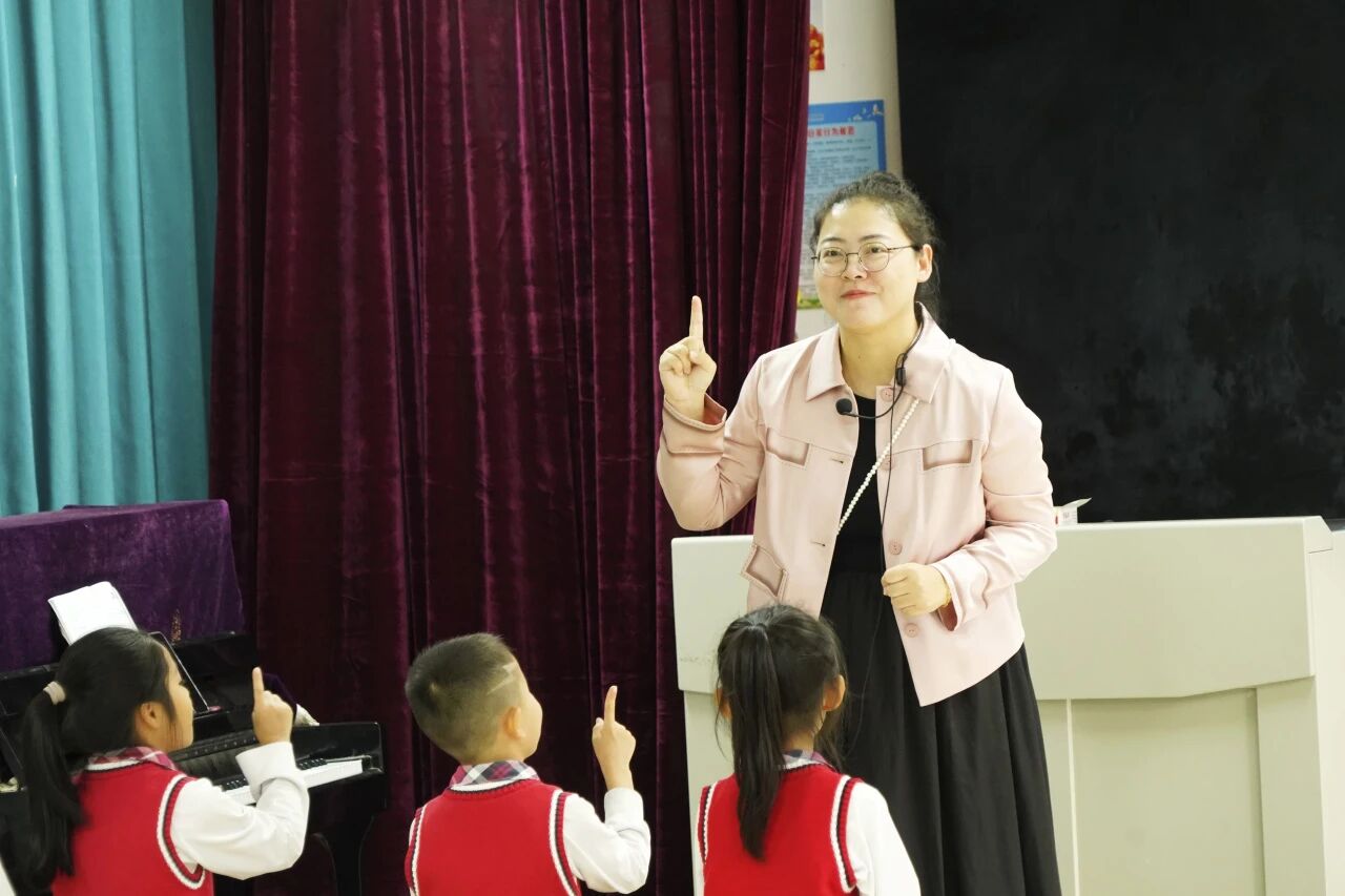 洪钰老师执教的三年级音乐课《我们大家跳起来》,以律动游戏和多形式学唱为主线,帮助学生轻松掌握了旋律的上行、下行、级进、跳进及同音反复等核心知识。课堂上,老师巧妙运用AI技术,让“巴赫”穿越时空讲述生平,有效激发了学生的好奇与学习兴趣。最后,师生在欢快的三拍子韵律中同台歌舞,实现了音乐知识学习与审美情感体验的双重提升。