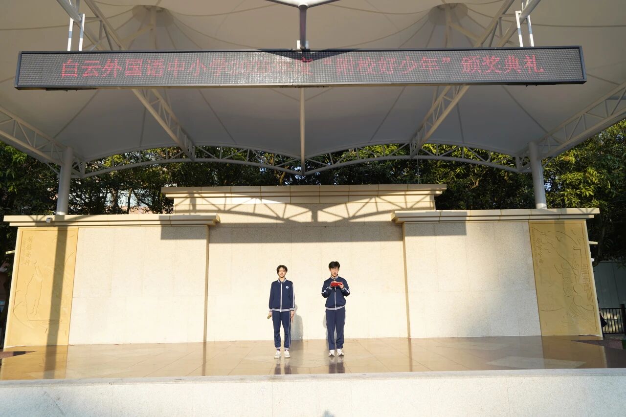 为贯彻立德树人教育的根本任务,引导学生自觉践行社会主义核心价值观,深入推进素质教育,鼓励学生全面发展,突出个性,培养特长,促进学生综合素质的全面提高,2025年12月,白云外国语中小学组织开展“附校好少年”评选活动,遴选出一批品学兼优、表现突出的优秀学子。12月29日,我校举行了颁奖典礼,为获评的 “附校好少年” 隆重颁奖,以此表彰先进,激励全体同学奋发向上。