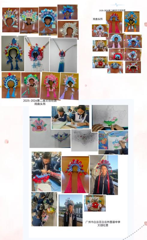 在曾华丽老师的引领下,文创社以“传统与创意交融”为轴,带领同学们开展“个性化笔记本设计与制作”与“扭扭棒戏曲头饰制作”。从设计到装订,从缠绕到组合,同学们不仅锻炼了动手能力,更在元旦晚会的走秀中,让手工头饰与华服相映生辉,展现传统文化在当代校园中的灵动传承。