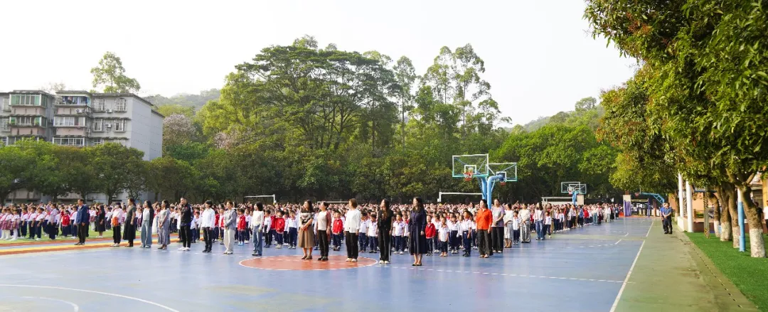 3月23日早晨,我校全体中小学师生齐聚大操场,隆重举行第十五届英语文化节开幕式。本次开幕式由小学曾芊雅、梁静窈同学共同主持。