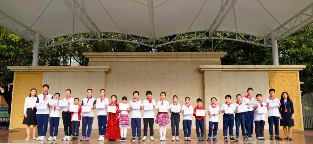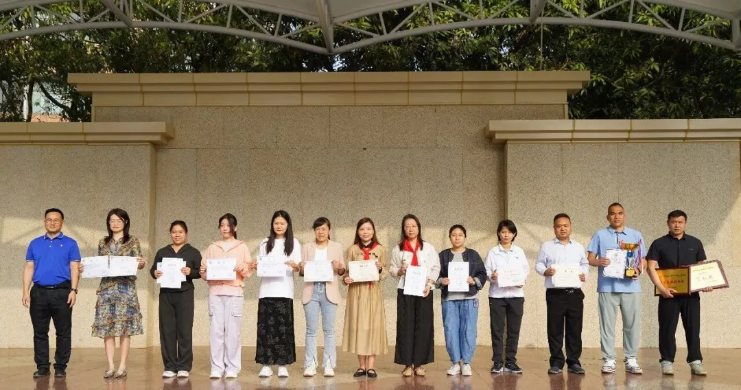 教师发展中心杨波主任宣读近期师生校外获奖情况,方建军校长、黄哲昙副校长、黄秋敏副校长及朱中振校长助理为获奖师生颁奖。一份份荣誉见证着师生的不懈努力,也为校园再添荣光。