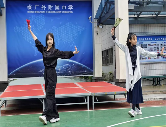 第二项:来自学生会的学生初一2班的梁咏瑜和初一3班的吕恬汐表演舞蹈《霍元甲》。