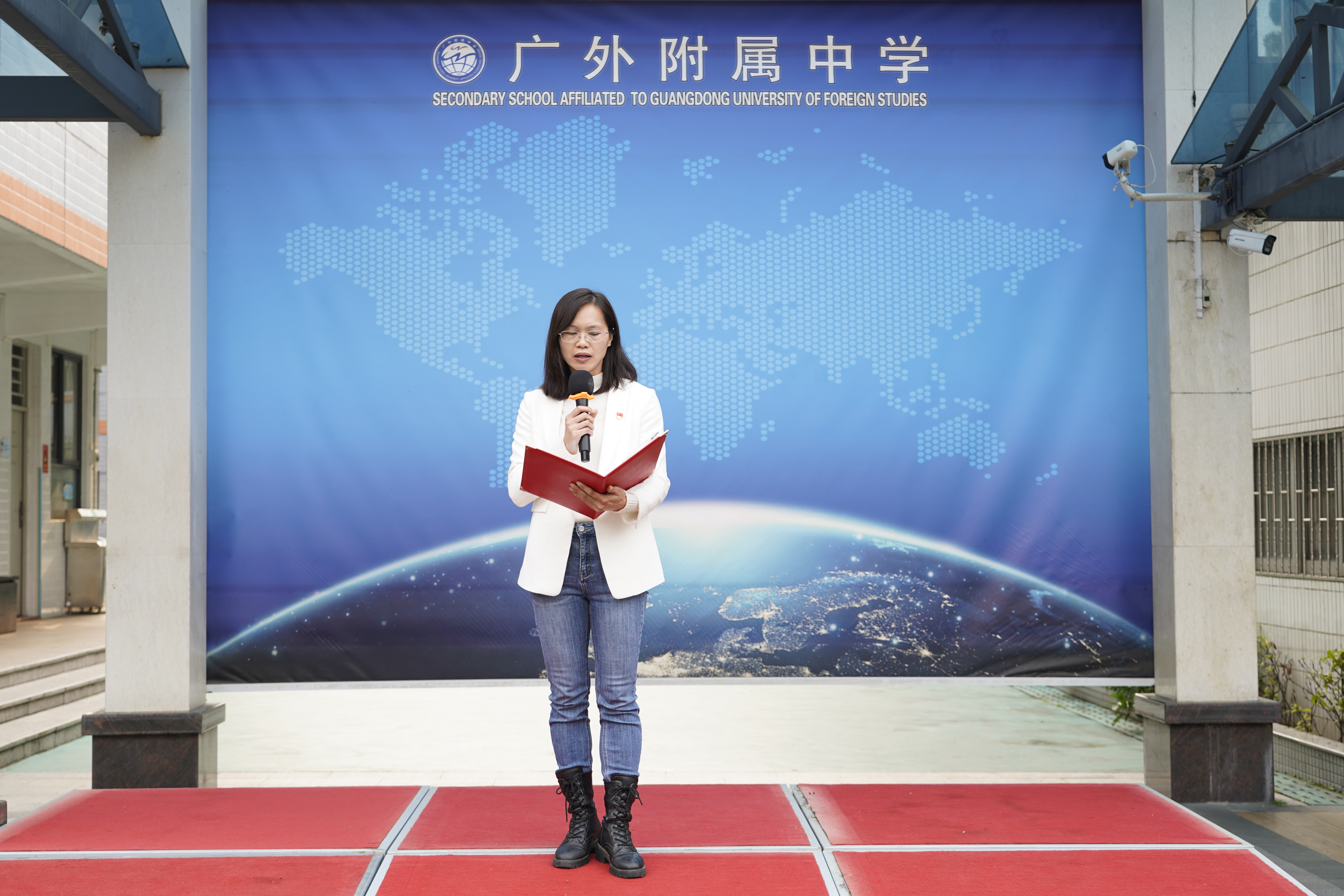 第三项:学生发展中心钟慧珍副主任就国旗下讲话。她讲话的题目是《心向阳光,做文明礼貌的中学生》。钟主任指出:我们的校园坐落在白云山脚下和广外高等院校校园里,校园一派绿意盎然,非常美丽,但是绿色校园还存在一些不文明行为。例如:有的同学垃圾随便丢,认为反正有值日的同学打扫,扔了又何妨呢;还有部分同学喜欢在课间、晚修后,在教室走廊上起哄大闹,走路推推搡搡,恶搞,开低俗的玩笑,盲目追风玩梗,各种污言秽语随口讲。钟主任说:这些不文明的行为举止,不仅影响个人的道德修养,而且还会影响到我们学校的形象。或许有些同学,分不清玩笑与辱骂,打闹与伤害,不小心间就把打闹演变成暴力行为,甚至打架。有的同学习惯出口成脏、恶语伤人、给同学起侮辱性外号;有的同学在网上发表具有人身攻击成份的网络言论等等,这些就属于校园欺凌。校园欺凌或校园暴力不仅给同学们造成了身体上的伤害,更给他们的心灵烙下了深深的伤痕,也不可避免的影响了同学的学习,还影响了他们的健康成长。最后,为了预防校园欺凌与暴力,建立和谐绿色校园。钟主任提出四点要求,要同学们努力做到。