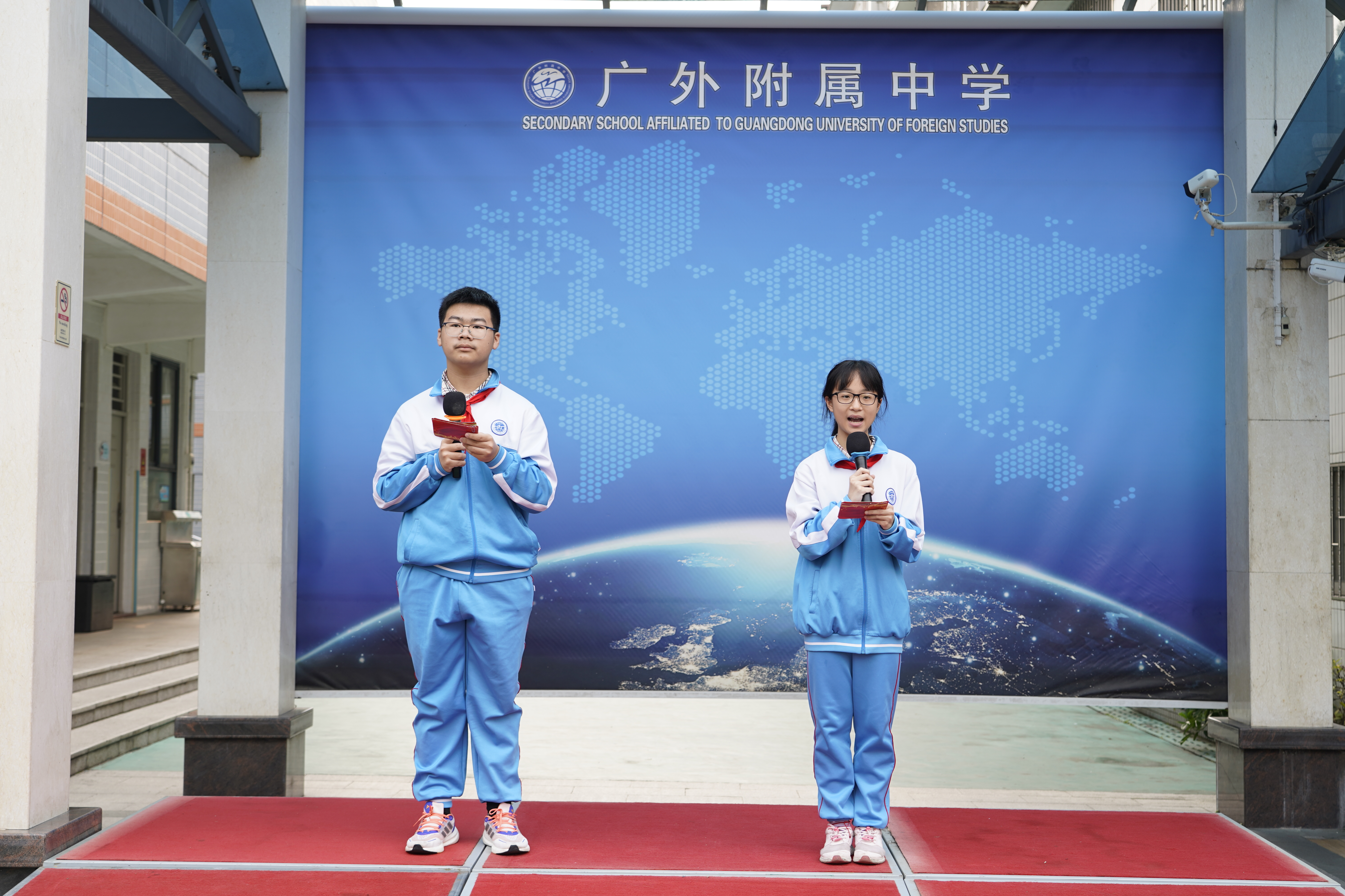 主持人是来自初二4班的王景涵、叶子茁。他们稳重、老练、不慌不忙。