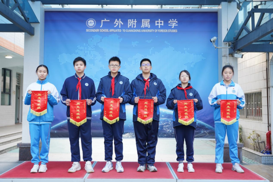 最后,颁发上周流动红旗,获得流动红旗的班级是:初一(1)班、初一(4)班,初二(3)班、初二(4)班,初三(2)班、初三(3)班。