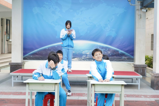 接着,初三(2)班表演节目:《诚信考试》。节目通过同学因考试作弊受到惩罚的反向教育,让同学们深刻认识到作弊行为是绝不容触碰的红线,让他们内心筑起了一道防范作弊的堤坝。