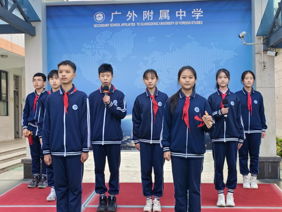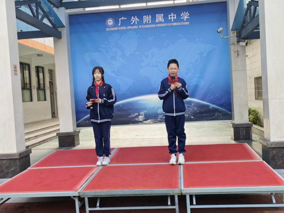接着,学生处主任胡琴老师解读了学校将要举办的“文明礼仪”主题征文与演讲比赛方案,以及关于“文明礼仪”的重要讲话。作为附中学生,同学们在升旗礼上大声宣读: