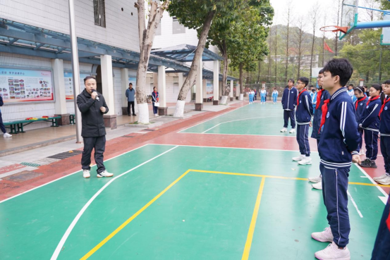 接着,陈鑫老师国旗下发言。他大体从三个方面宣讲诚信。国家层面、社会层面、个人层面。国家层面是比较中美的政策,社会层面是拿315晚会上披露的蜜雪冰城与沪上阿姨两个饮品的质量问题,反思为什么会有两个截然不同的社会舆论,个人层面,国家提供了最好的环境,学生们应该好好把握,努力学习,把学生在学校的小事都归结为对祖国承诺,切合诚信教育。他还强调:“诚信是人生的通行证,责任是成长的催化剂。希望同学们将诚信内化为品格,将责任转化为行动,从按时完成作业、遵守考场纪律的‘小诚信’,到勇担社会责任、心怀家国天下的‘大担当’,在点滴中涵养高尚人格。”陈老师殷切嘱托,以情怀引领成长。