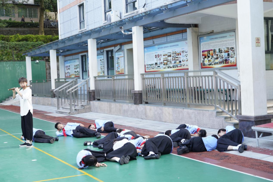 初一(3)班学生自编自演的情景剧重现了抗战时期的英雄壮举。让观演的学生们更深刻地认识到“九一八事变”给中国人民带来的巨大伤痛,也更加坚定了珍爱和平、追求民族独立和富强的信念。