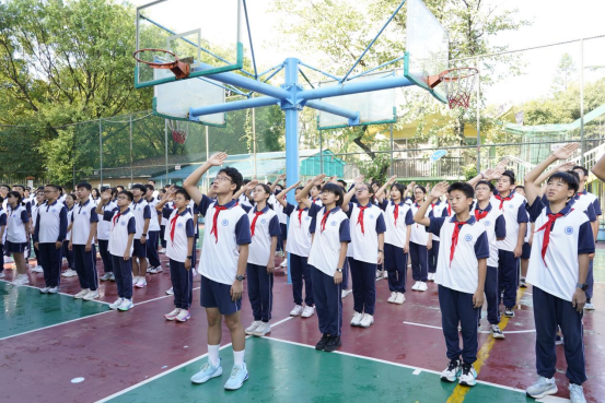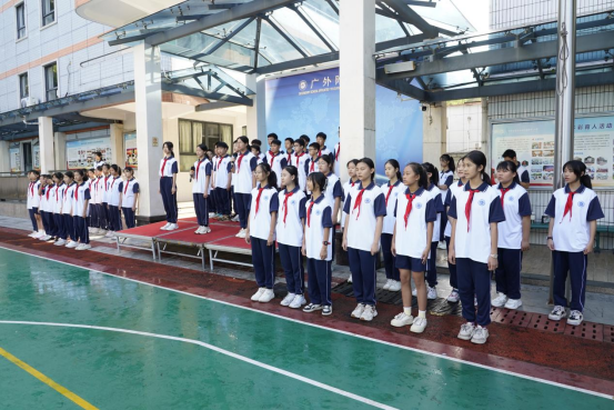 为了将爱国情感与中华文化传承深度融合,强化全体师生的爱国意识与民族认同感,挖掘广府特色文化的当代生命力,增强我校师生对本土文化的认同感与自豪感,焕发广府文化活力;为了激发全体同学对中华文化与广府文化的兴趣,培育文化自觉与自信,推动文化在新时代的传承、传播与创新,今天早上,我校中学部全体师生齐聚操场,举行了一场以“弘扬中华文化,焕发广府活力”为主题的升旗仪式。主持人是来自初三年级的李敏瑜、梁国琛。