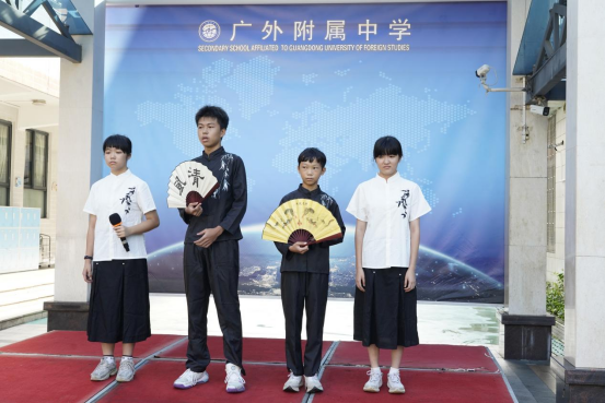 粤语,广东地区称为广东话、广府话,是一种声调语言,是广东地区广府民系的母语。初二(3)班学生代表杨汶达 何梓弘 邱泳霖 邱泳潼给全体师生表演了粤语古诗朗诵,他们纯正的粤语表演,展现了粤语文化的独特魅力。学校合唱团也给大家带来了精彩的粤语歌曲《生命有价》,这首有着极强广府地域特色和中国文化气息的歌曲,让师生们领略风情万种的广府文化。