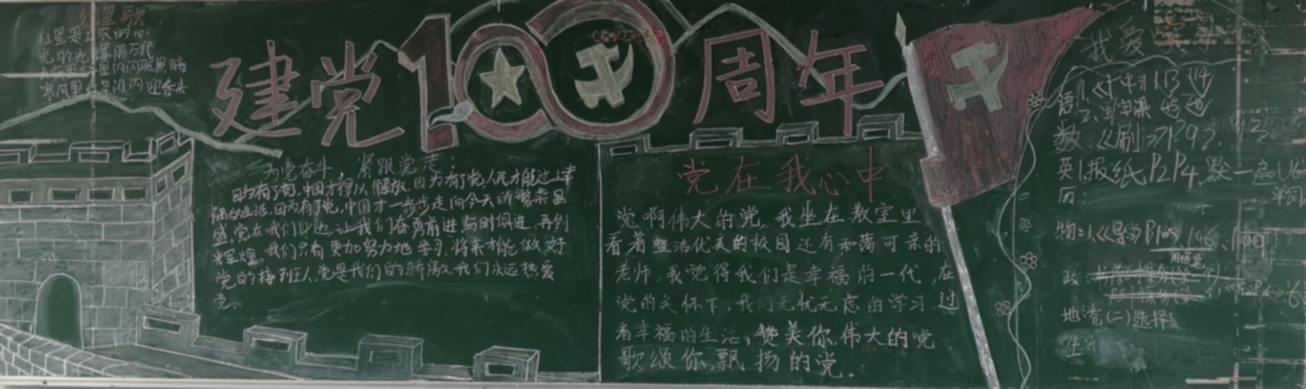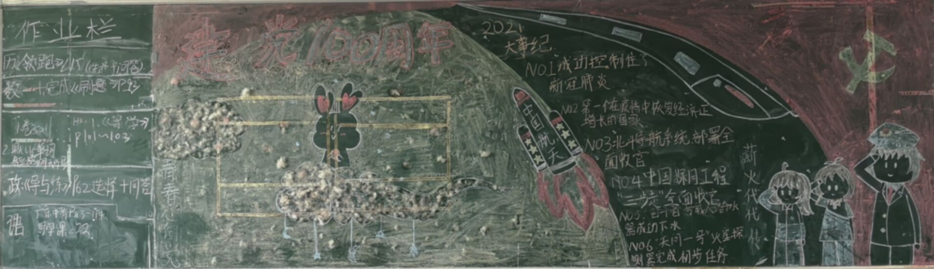 本网讯 为庆祝中国共产党建党100周年和“五一劳动节”,让学生继承和发扬党的光荣传统和优良作风,同时让学生了解“五一劳动节”的由来,增强了劳动最光荣的意识,培养了热爱劳动的好习惯。广外附中开展以“庆祝建党100周年”“爱劳动”为主题的黑板报展示活动。