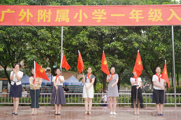本网讯 5月24日一早,暖暖的阳光普照广外附小的校园,在蓝天白云和红红的队旗的映衬下,校园变得格外迷人。这是个值得纪念的好日子,这一天我们入队啦!你听,队歌激昂;你看,队旗飘扬。我们戴上了鲜艳的红领巾,成为了一名名光荣的少先队员!