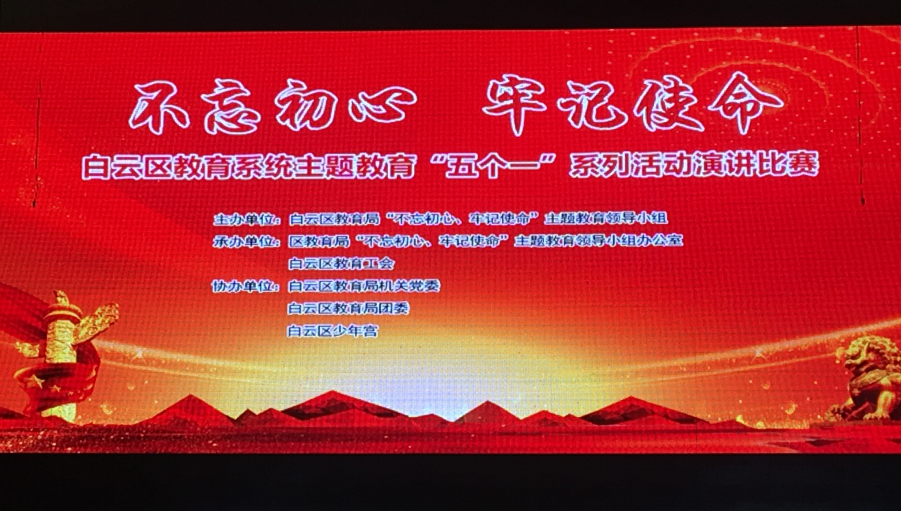 本网讯 我校王鑫鑫老师于11月8日下午参加白云区教育系统“不忘初心、牢记使命”主题教育“五个一”系列活动演讲比赛荣获第一名。