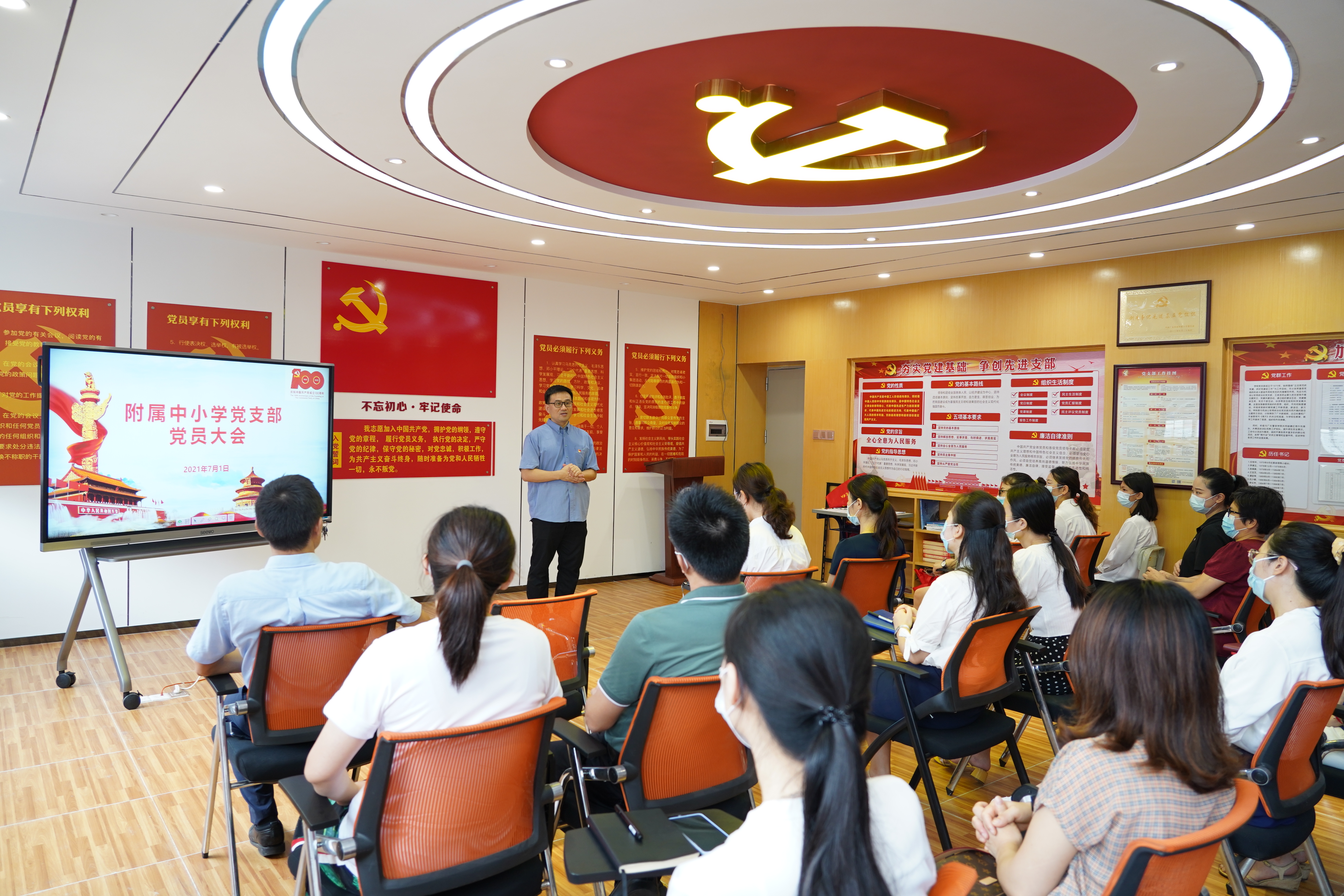 方建军校长以新加入支部的党员身份发表感言。他指出,作为一名党员,要大胆亮出身份,以习近平新时代中国特色社会主义思想为统领,牢记使命担当,忠诚履行职责,将党的精神化为实际行动,在学校工作中体现出先锋模范作用。各位党员要为学校的发展作出自己的贡献,共同推动附中、附小工作再上新台阶。