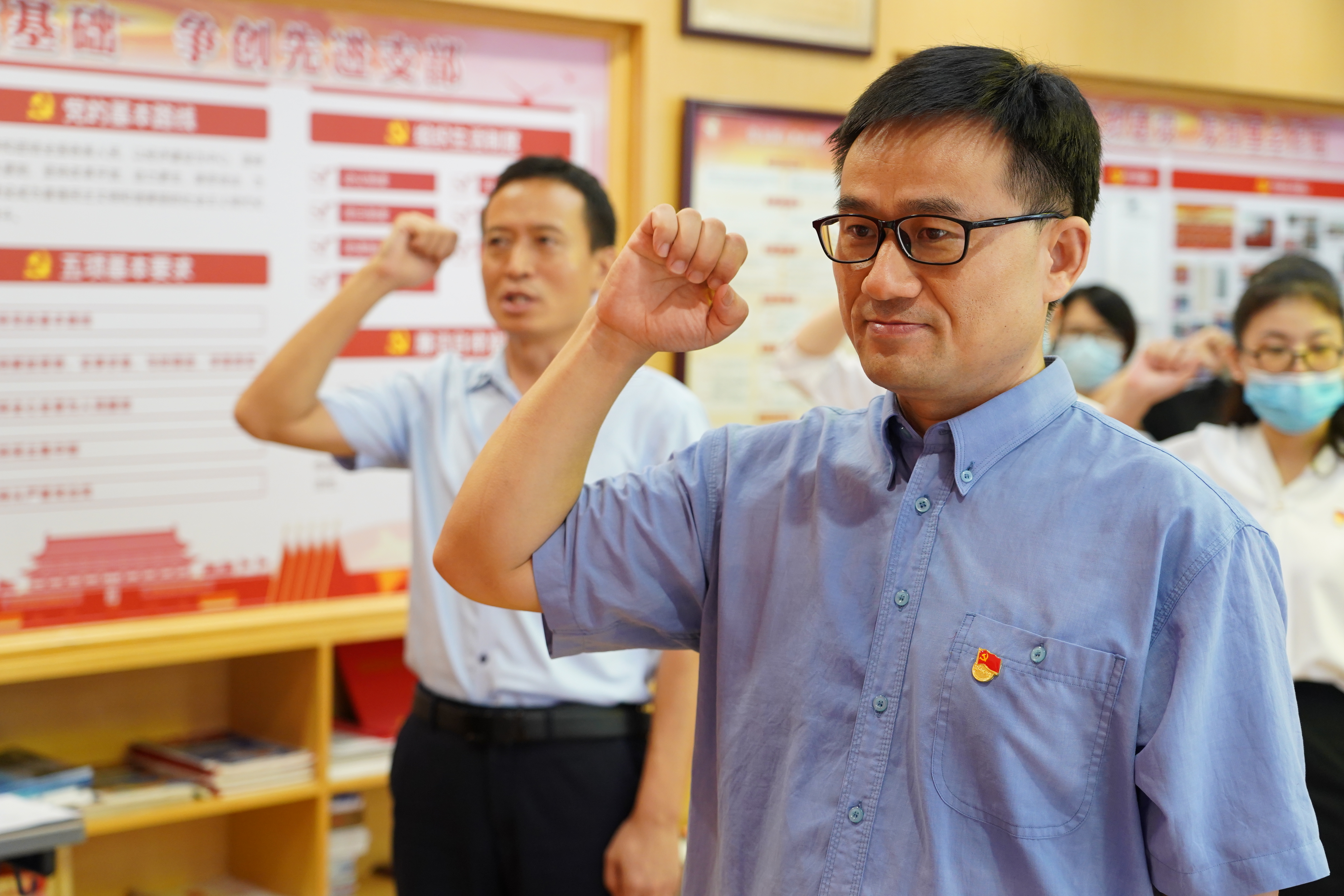 方建军校长带领全体党员教工面对党旗庄严宣誓,重温入党誓词,铭记党员的责任和使命,以铮铮誓言宣示为党奋斗终身的决心:“我志愿加入中国共产党,拥护党的纲领,遵守党的章程,履行党员义务,执行党的决定,严守党的纪律,保守党的秘密,对党忠诚,积极工作,为共产主义奋斗终身,随时准备为党和人民牺牲一切,永不叛党。”