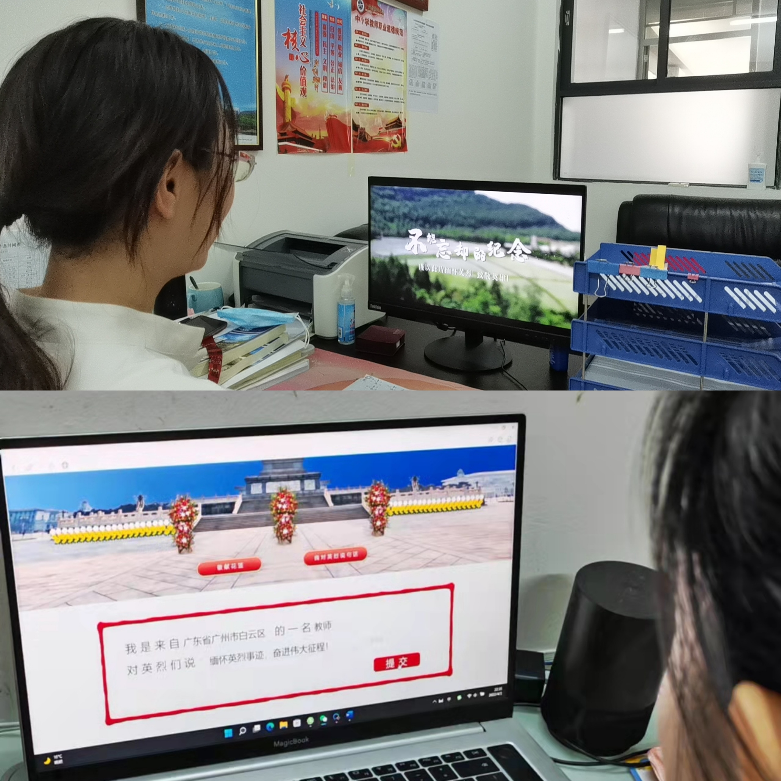 学校少先队结合“广州教育”“全国少工委”公众号,开展“网上祭英烈”争章活动,引导广大少年儿童传承传统文化,弘扬爱国精神,涵养爱国情怀。