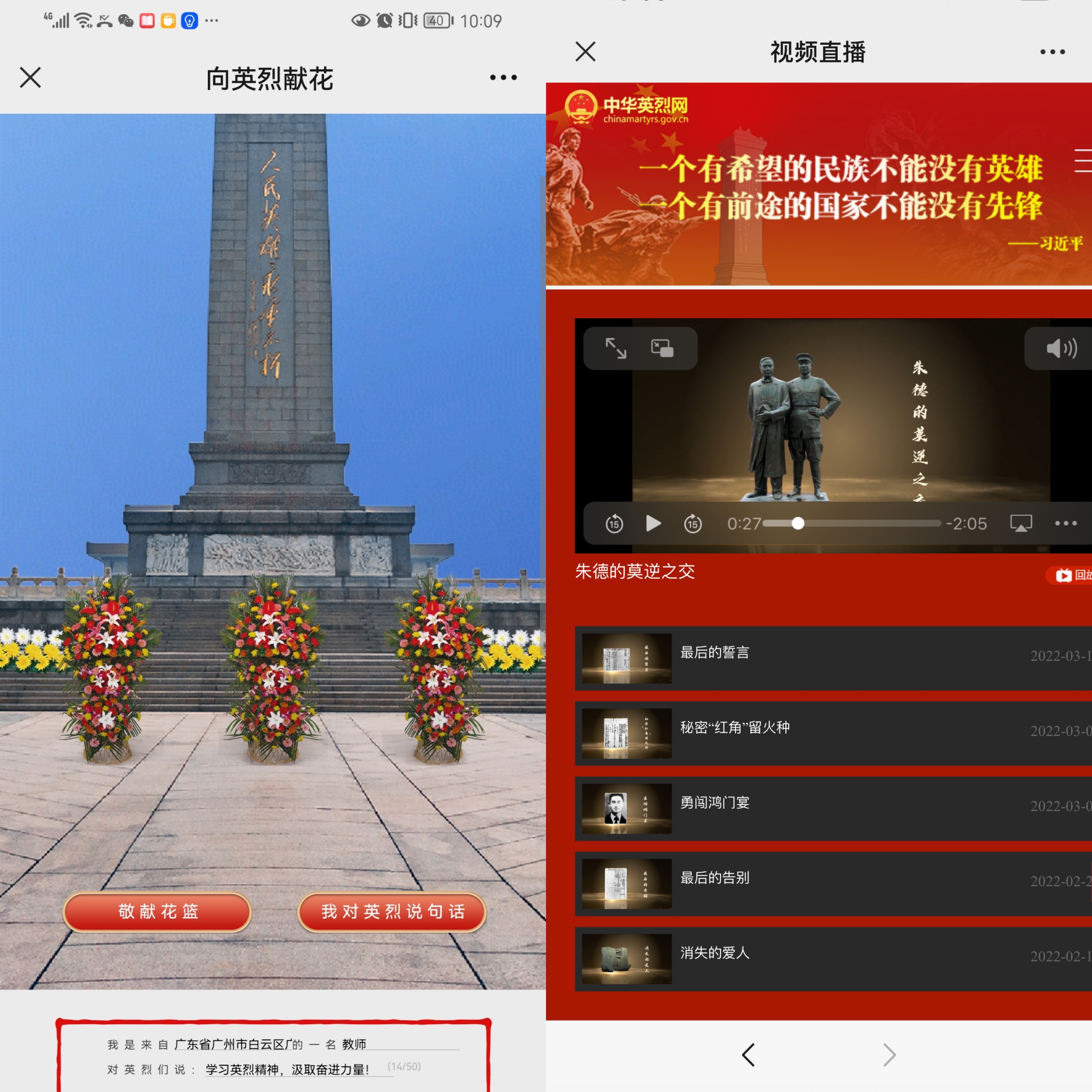 学生们在家长的指导下,在网络上给英烈留言、向英烈鞠躬、献花,祭奠英烈,此活动得到家长和孩子们的积极配合。表达对革命先烈的敬仰与缅怀,增强了爱国之情。