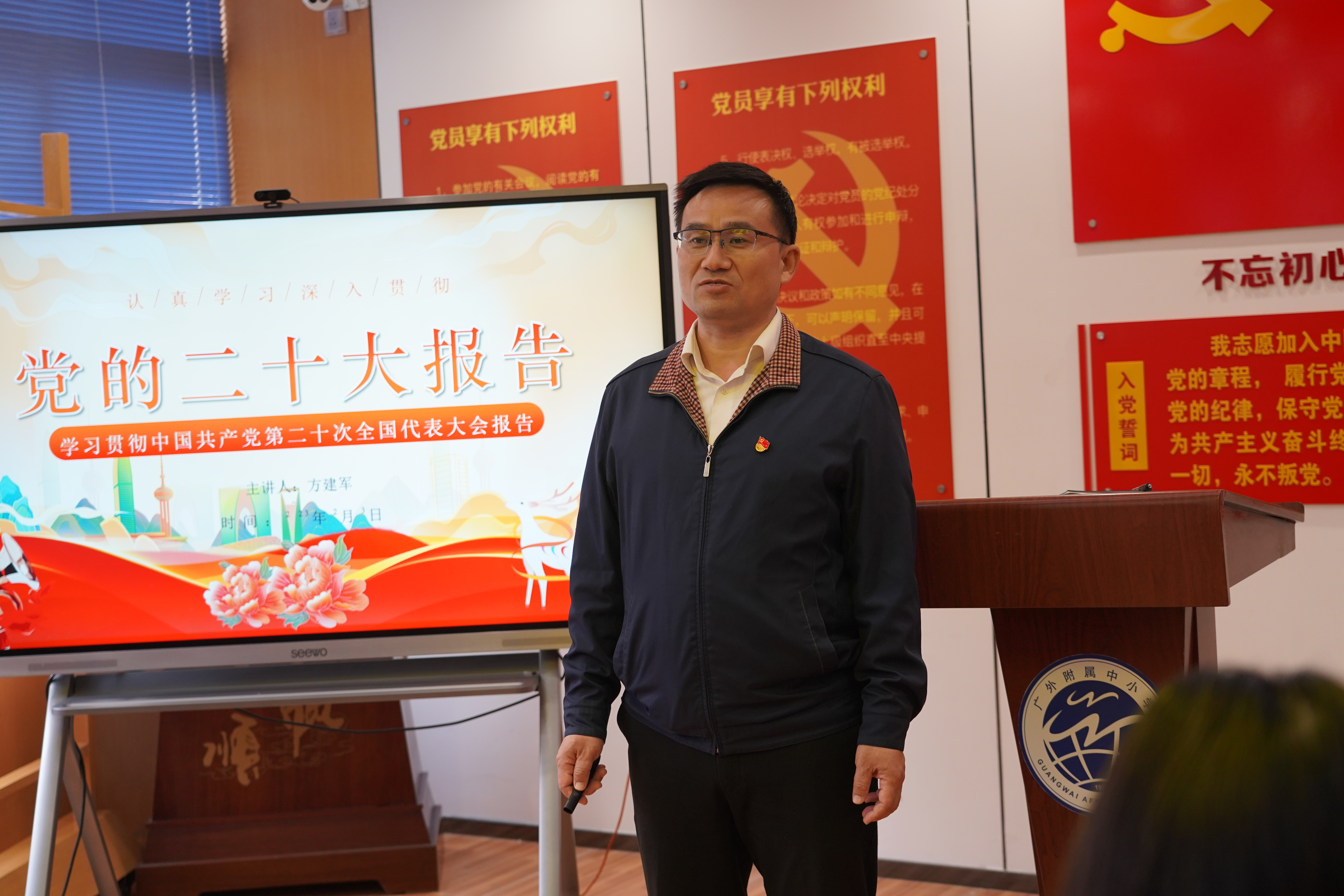 会上,支部书记、校长方建军为全体党员上党课,引领全体党员深入学习党的二十大精神并对新学期党支部工作做全面部署。