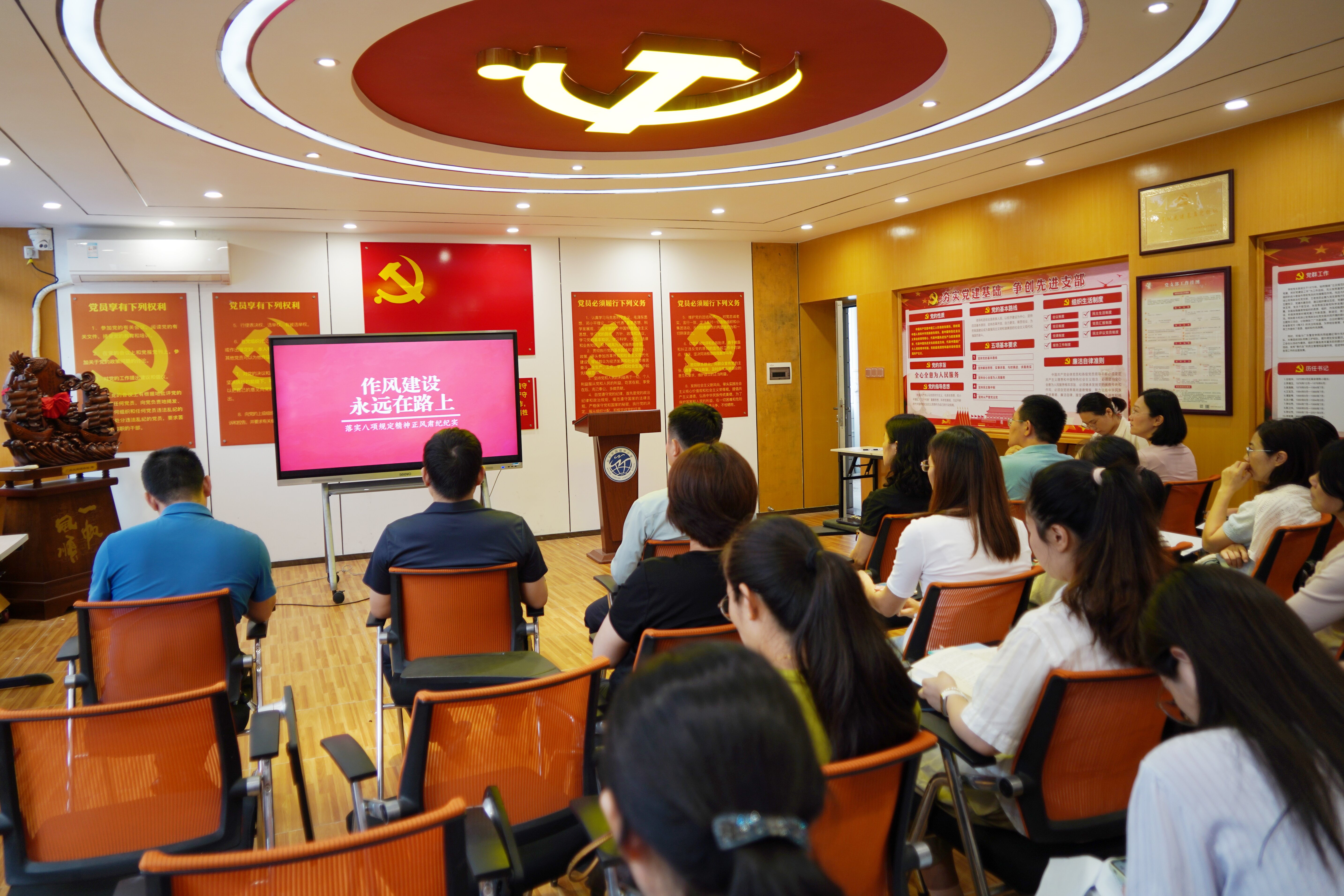 随后,党员们观看警示教育片《作风建设永远在路上——落实中央八项规定精神正风肃纪纪实》。该专题片通过详实的案例与深入的剖析,展现了党中央在落实中央八项规定精神过程中的坚定决心与显著成效,揭示了作风建设对于党和国家事业发展的深远意义。