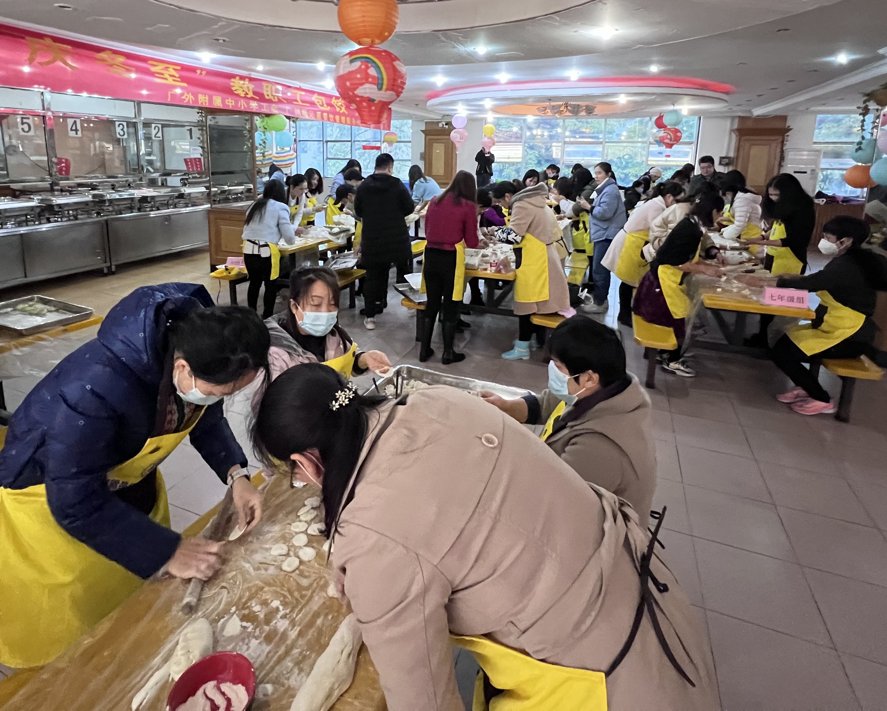 本网讯 冬至是中国一个重要的节气,在中国传统习俗中,有“冬至大如年”的说法。12月21日上午,由学校工会主办,广州福沁原餐饮管理服务有限公司承办的庆冬至教职工包饺子比赛在就餐点进行。50多名来自10个年级组的教职工进行了激烈的比拼,大家在动手的乐趣中欢度冬至,一同感受“冬至大如年”的浓厚氛围。