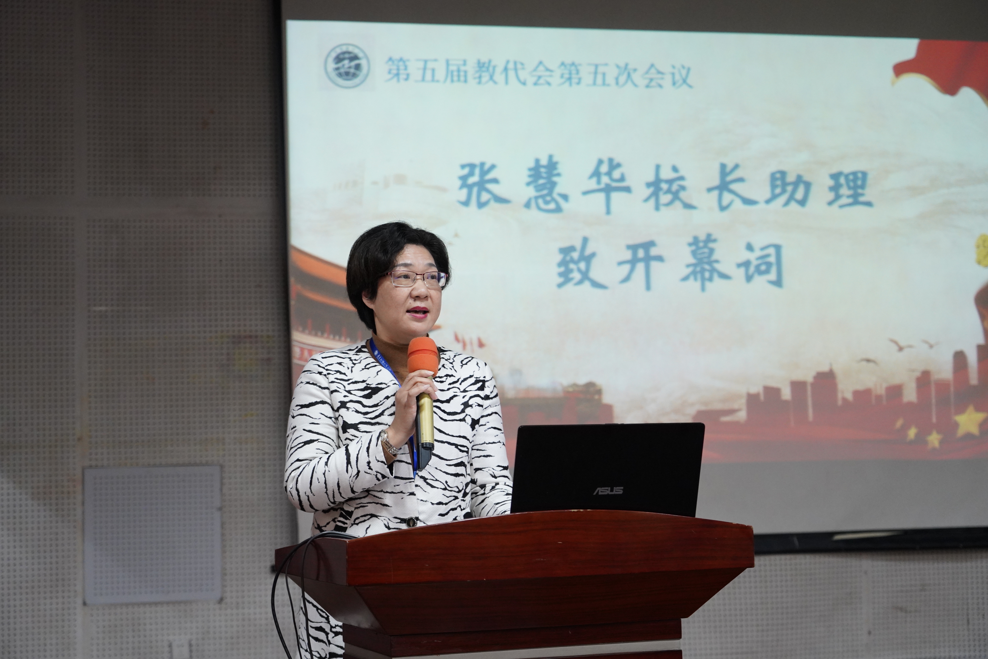 大会在庄严的国歌声中拉开帷幕。校长助理张慧华致开幕词。她说,在即将过去的一年中,学校各项工作有条不紊地开展,教育教学质量稳步提升,取得了喜人的成绩。在教育改革新形势下,学校迎来新的机遇和挑战。希望各位代表以高度的主人翁精神,充分利用好教代会这个平台,把握好“时”与“势”,运用集体的智慧和力量,共同助力学校行稳致远,促进学校高质量发展!