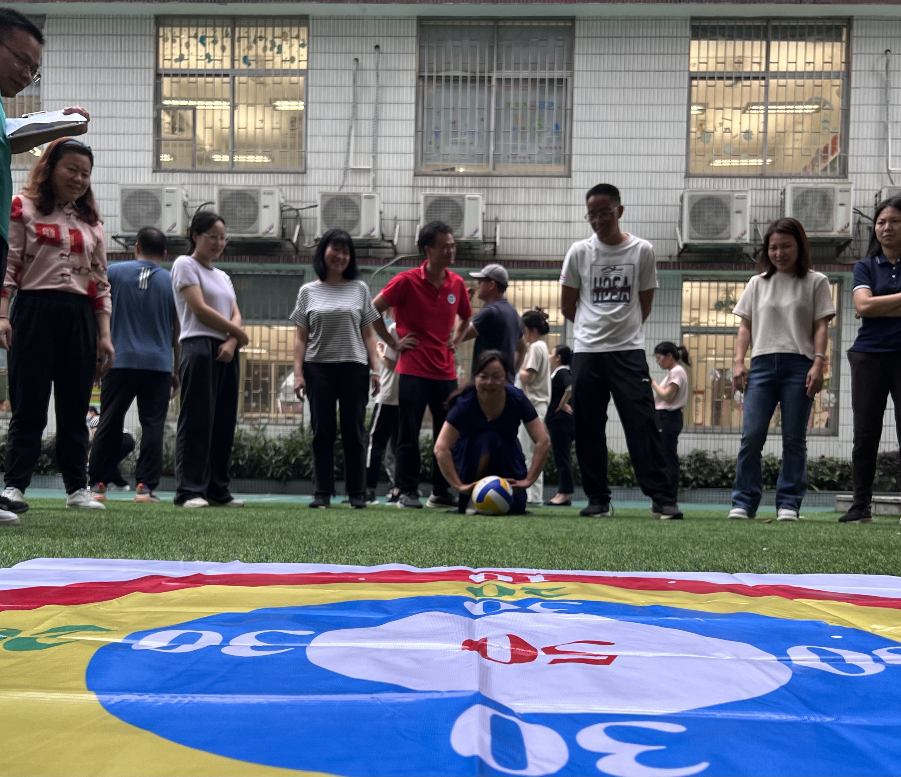 本网讯 5月10至6月6日,学校工会组织了教职工趣味气排球团体比赛。比赛选择在放学以后进行,期间各队准备充分,赛事扣人心弦,最终六年级团队勇夺冠军。