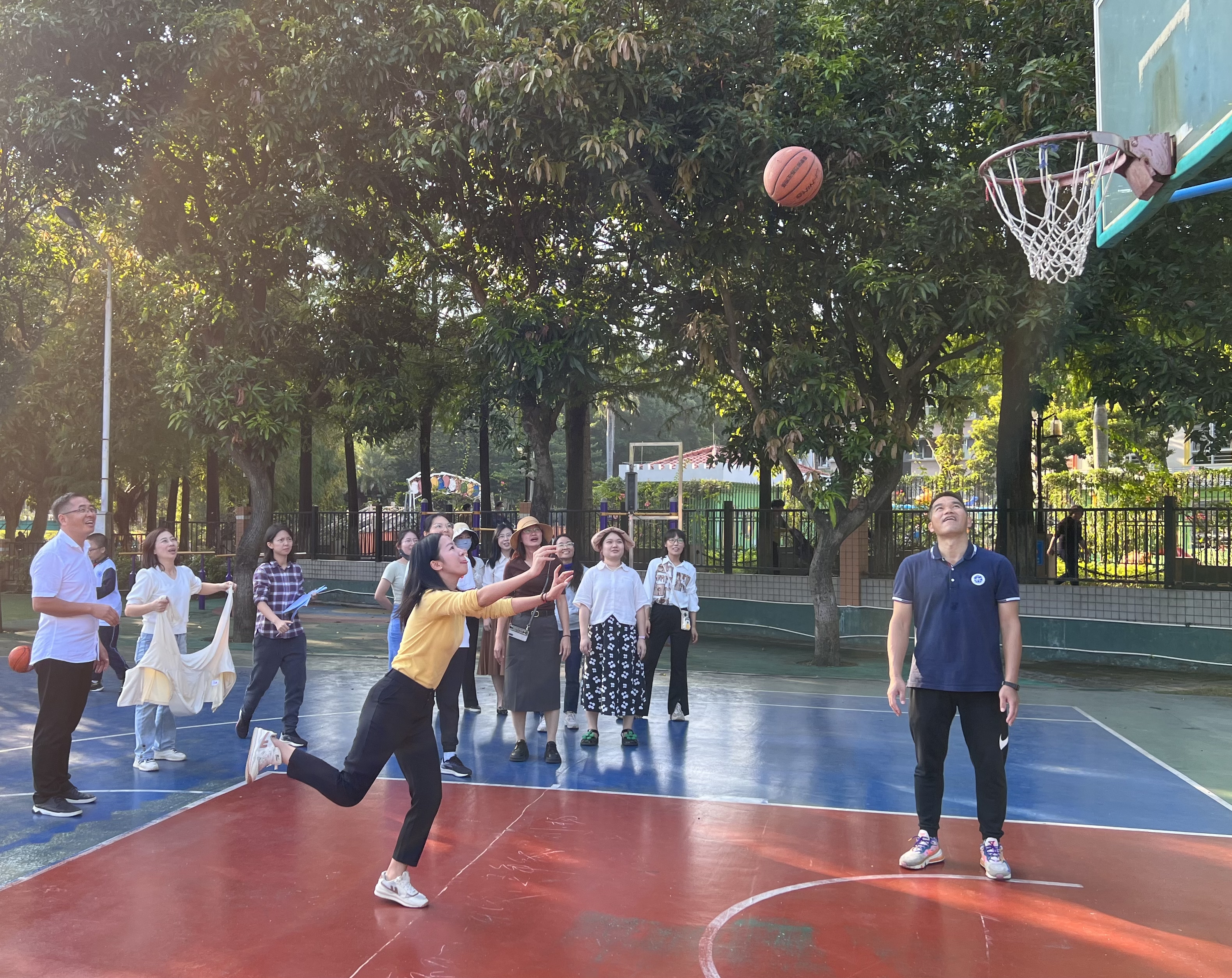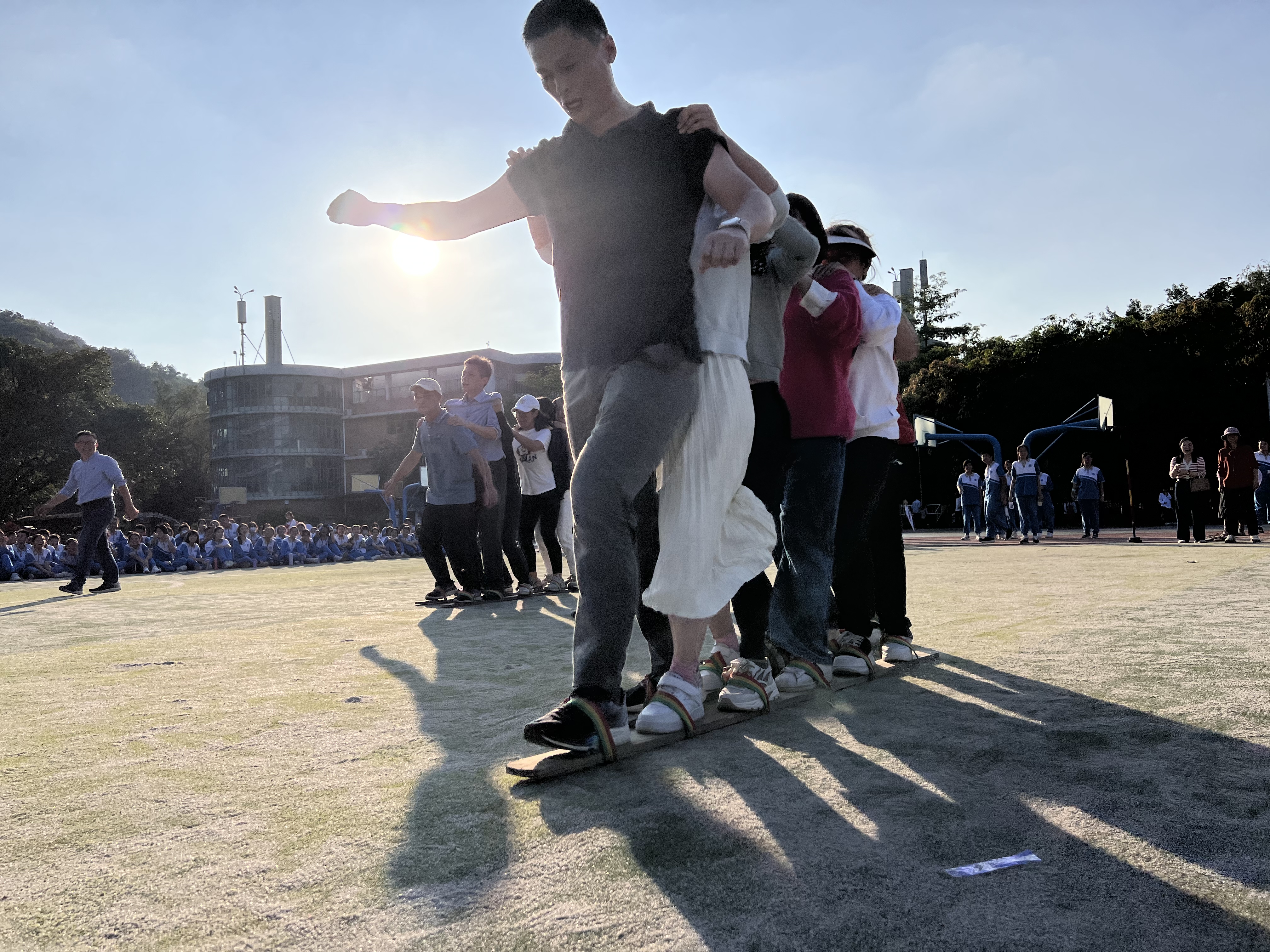 趣味运动会设置“定点投篮”“同舟共济”“无敌风火轮”等3个项目,本次活动将“趣味”融于“团队”中,教职工以年级为单位共组成10支参赛队伍,展开了激烈的角逐。比赛场面热烈、激动人心,营造出一个其乐融融、轻松和谐的校园氛围,留下了一幕幕精彩的画面。