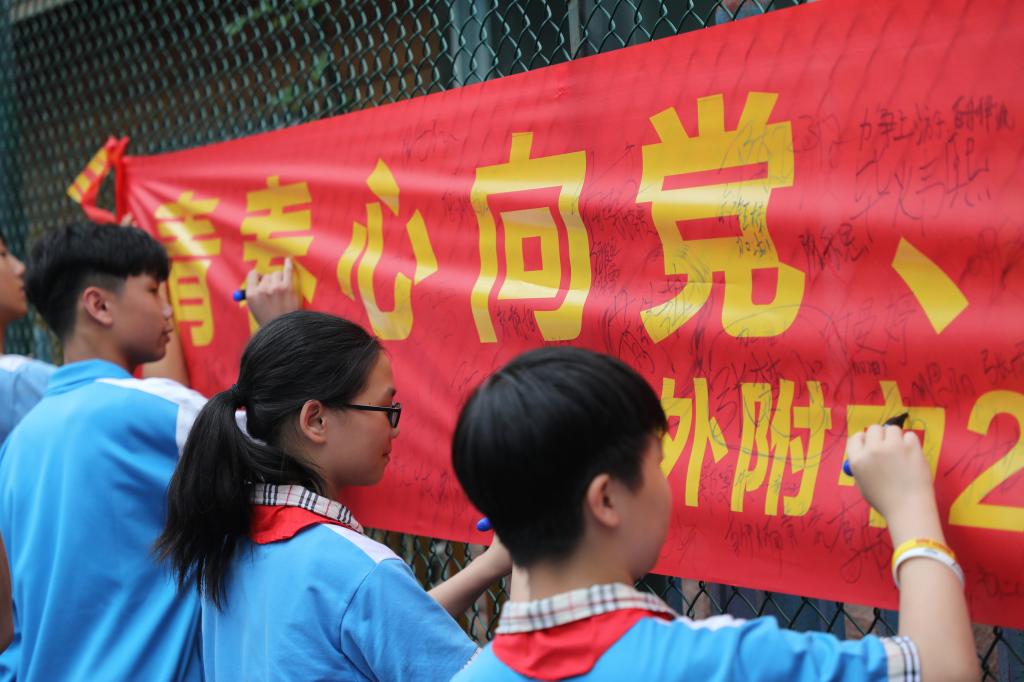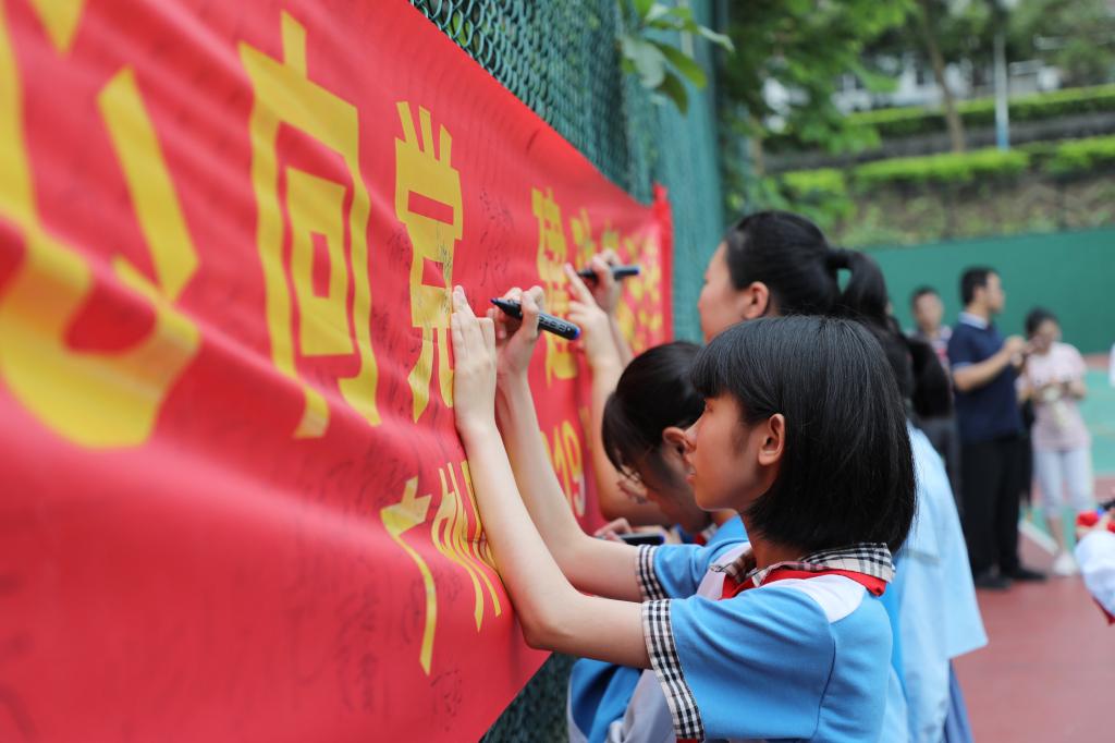 最后,活动在签名仪式中正式结束,同学们将对青春的希冀和美好记录在横幅上,珍藏。本次活动,每个同学心怀满满的责任感与使命感,特别初一全体同学见证了此次活动的庄严,给了极大的榜样和鼓舞。