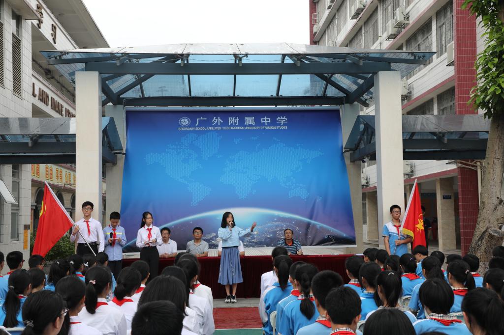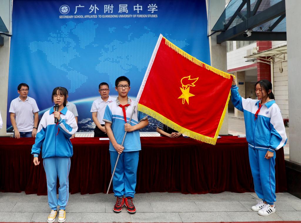 接下来,在大队长、学生会副主席谭力桐同学的带领下,全体少先队员一起用高亢与嘹亮的嗓音重温入队誓词,团委书记王琪老师带领大家呼号,少先队员们童年入队的情形再现。在呼号后,八年级的少先队员们将自己心爱的红领巾摘下,好好珍藏。