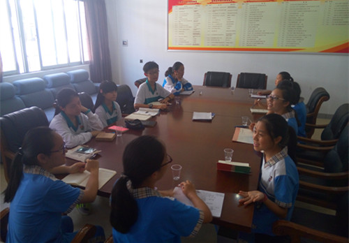 首先,学生处林主任向大家介绍了一下附中和外校的历史渊源;接着,团委书记王老师向广外外校的团委干部介绍了一下我校中学生“校三团”的基本情况。随即,两校的学生干部进行了深入的交流。