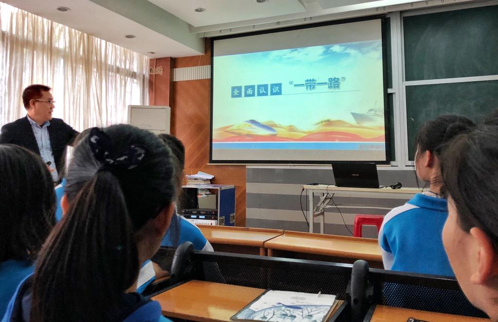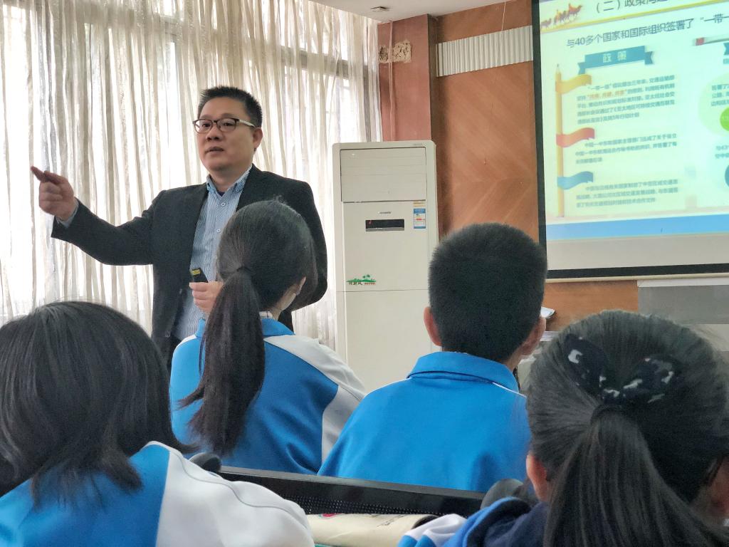 本网讯 为了进一步加大对团员青年、团学干部的培养教育力度,开拓视野,普及更多的知识,我校团委以“中学生视野里的国内外时政”为主题召开本期团校的学习。2018年12月20日下午一时,我校党支部陈又新书记在报告厅为大家带来了“全面了解:一带一路”为主题的团校第二课。
